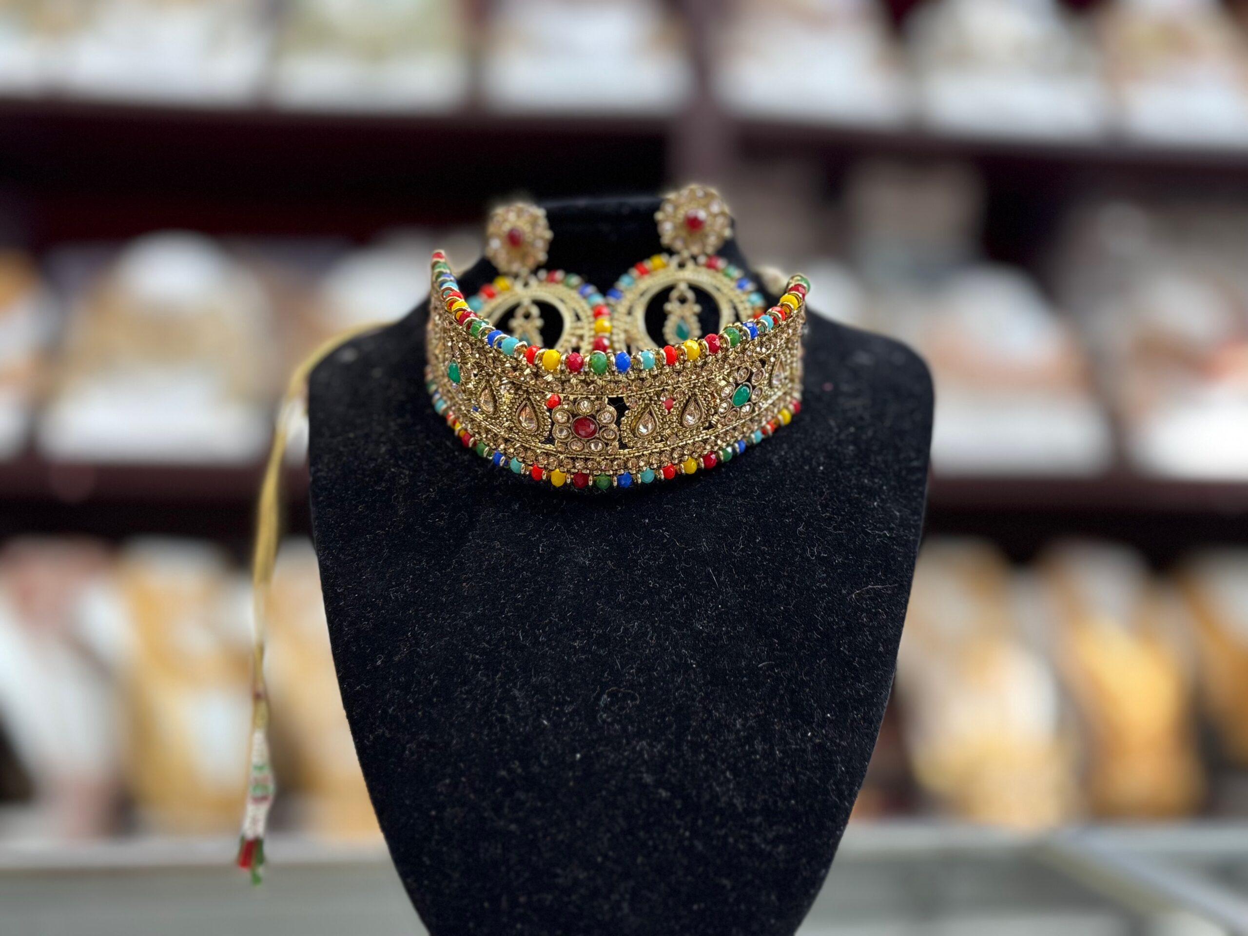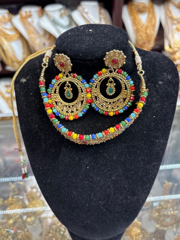 Gold Multi colored Kundan Choker Necklace Jewellery Set