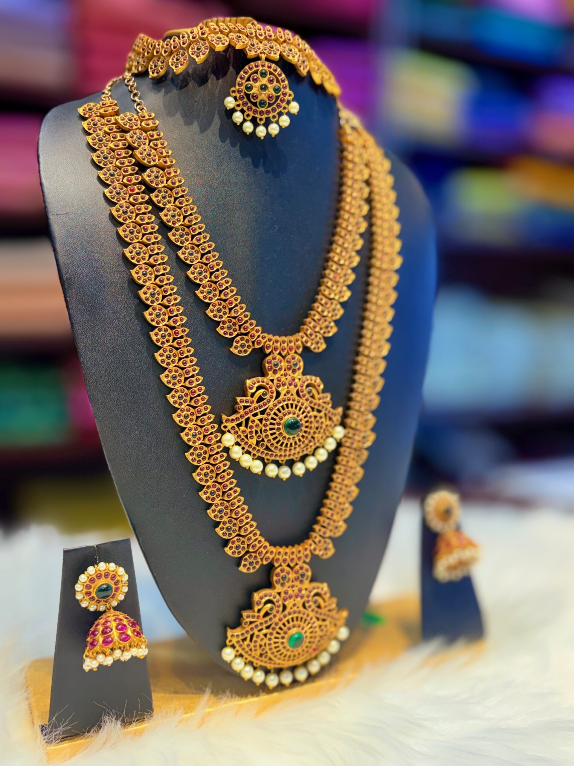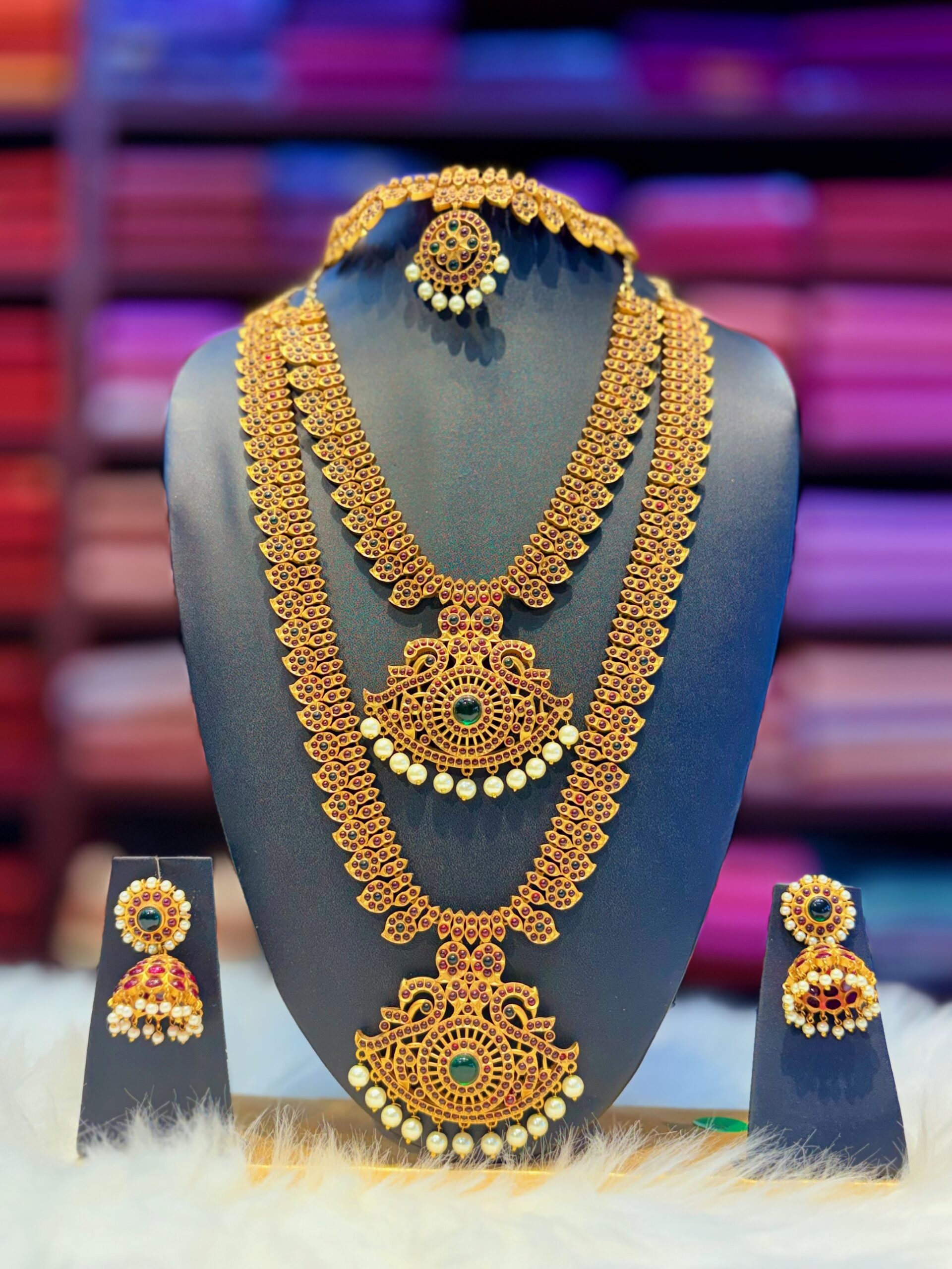 Necklaces – Aaram & Short, Earrings, Maang Tikka/ Uchchi pattam