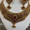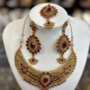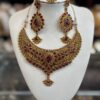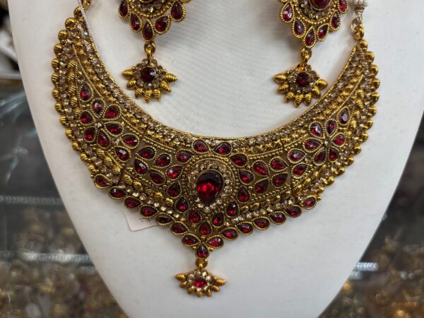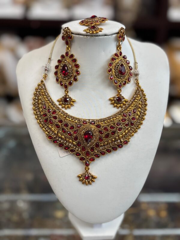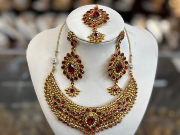 Red Gold Choker Necklace Earring Maang Tikka Red Stone Indian Jewelry Set