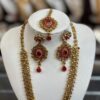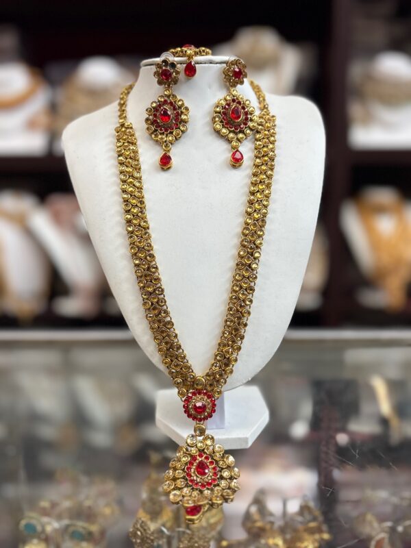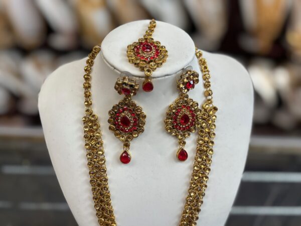 Red Gold Necklace Earring Maang Tikka Red Stone Indian Jewelry Set