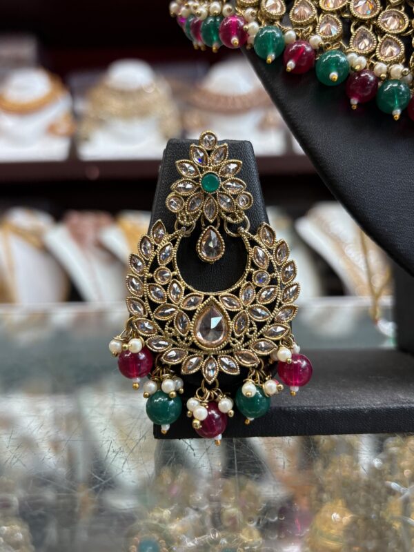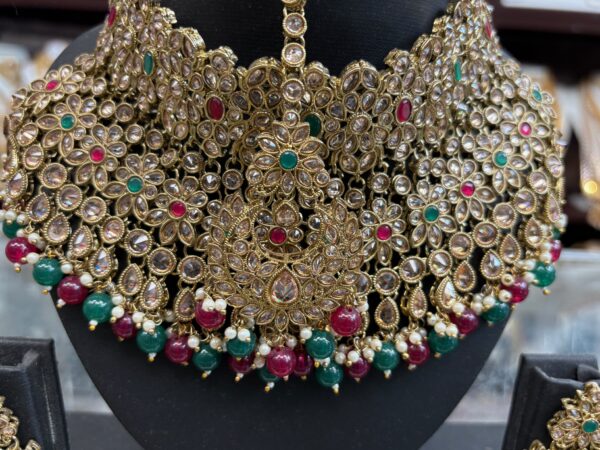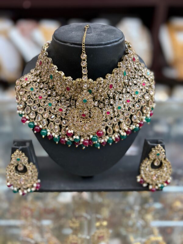 Necklace – Choker, Earrings/Jhumka, Maang Tikka/ Uchchi pattam