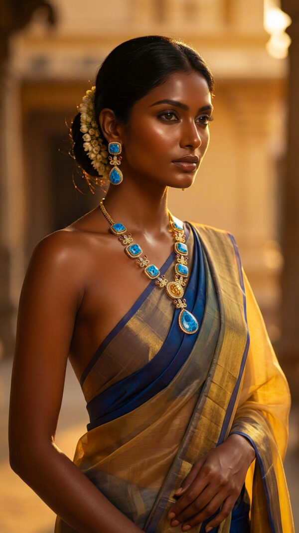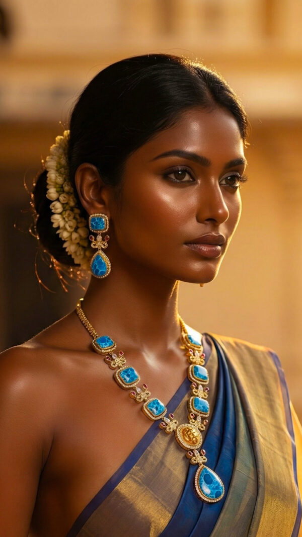 - Necklace Length: Mid-to-long length that sits gracefully along the neckline and bust, ideal over saree pleats