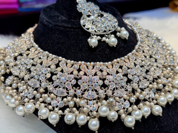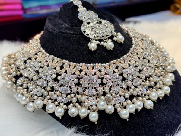 Silver Kundan White stones pearls Jewelry Set