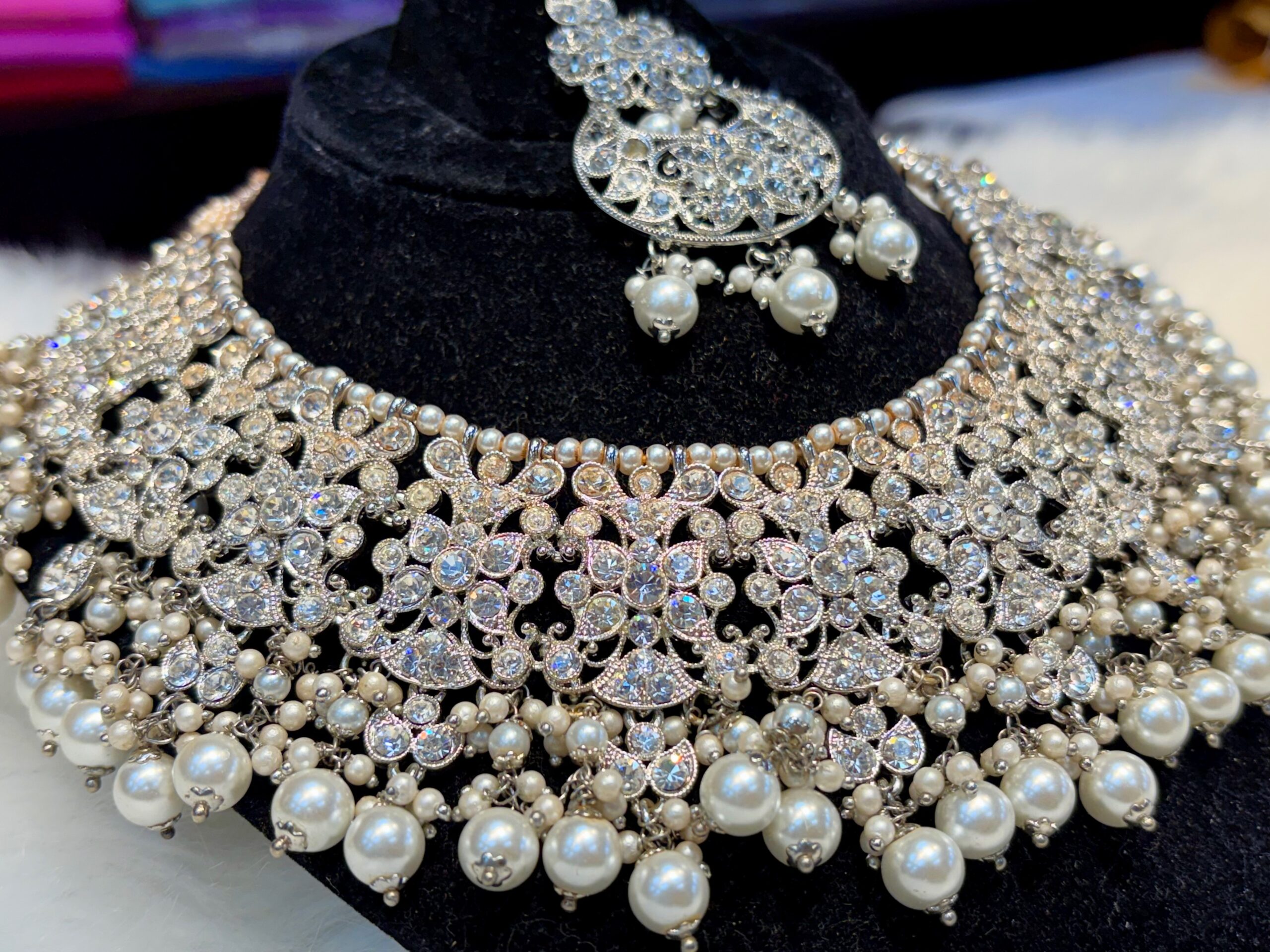 Necklace Choker, Earrings/ Jhumka, Maang Tikka/ Uchchi pattam