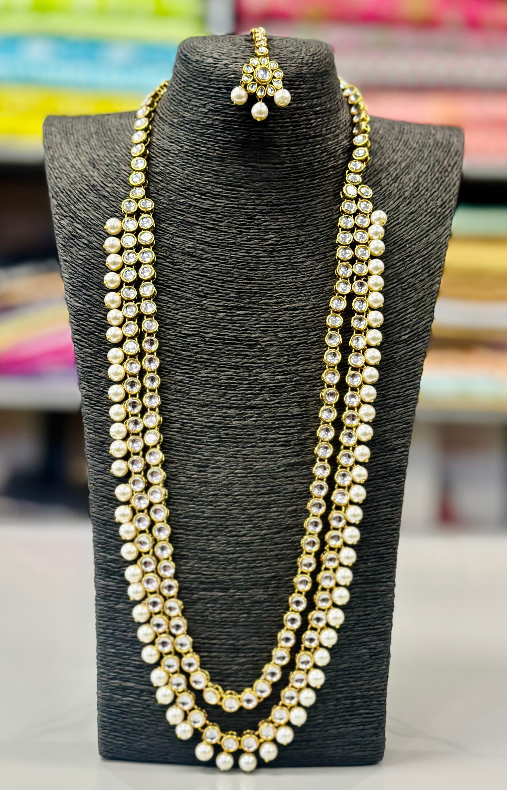 Design: Traditional long haar with layered detailing, inspired by royal Indian jewellery