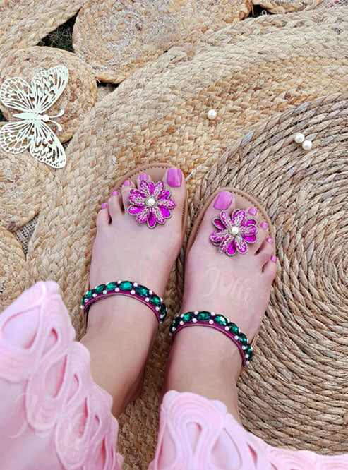 Say hello to P E T U N I A, Our cutest floral statement thumb signature kolhapuris. Its like wearing flowers on your feet, a design like no other. Perfect to pair with anything and everything this summer.