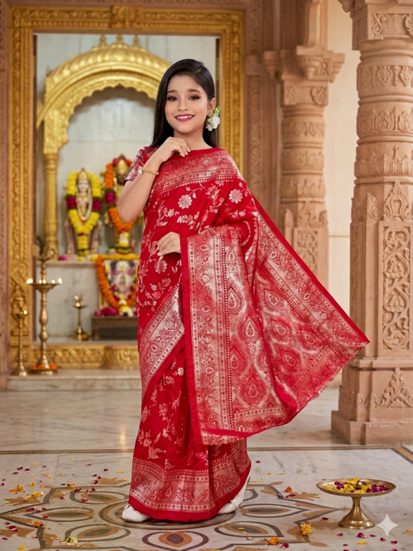 Make traditional dressing effortless and fun for your little princess with our new range of pre-stitched, ready-to-wear sarees. Perfect for festivals, traditional events, and family functions!