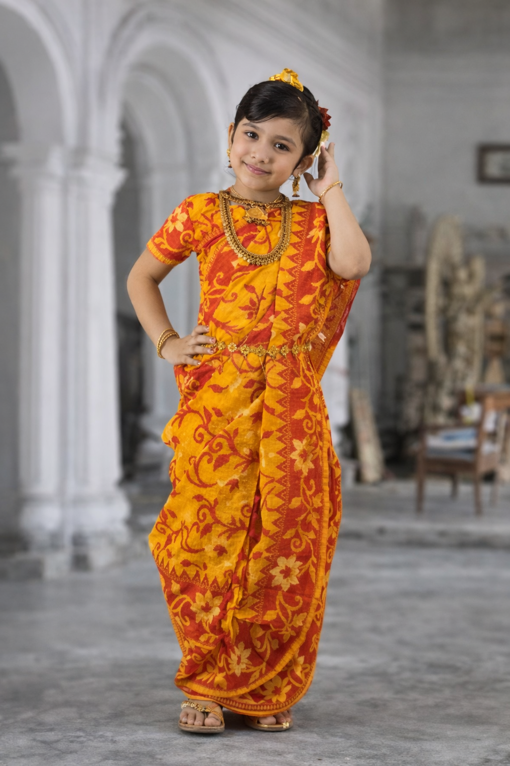 Make traditional dressing effortless and fun for your little princess with our new range of pre-stitched, ready-to-wear sarees. Perfect for festivals, traditional events, and family functions!