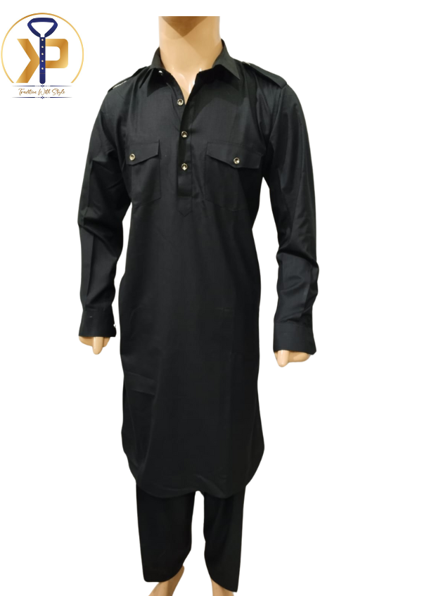 This Black Plain Pathani Kurta Salwar Set is an essential addition to your wardrobe. It features a Pathani style kurta, made of premium quality fabric with side slit detailing, and a pair of salwar with a comfortable fit. An ideal choice for special occasions like weddings, parties, Eid, Ramadan and other festive events.