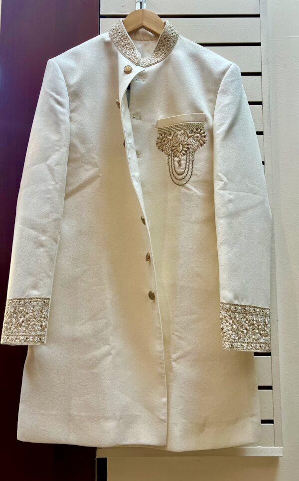 Pair it with matching churidar or pajama pants and classic mojris to complete the traditional look. Ideal for weddings, engagements, and cultural occasions where elegance meets heritage.