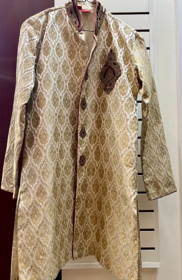 Pair it with matching churidar or pajama pants and classic mojris to complete the traditional look. Ideal for weddings, engagements, and cultural occasions where elegance meets heritage.