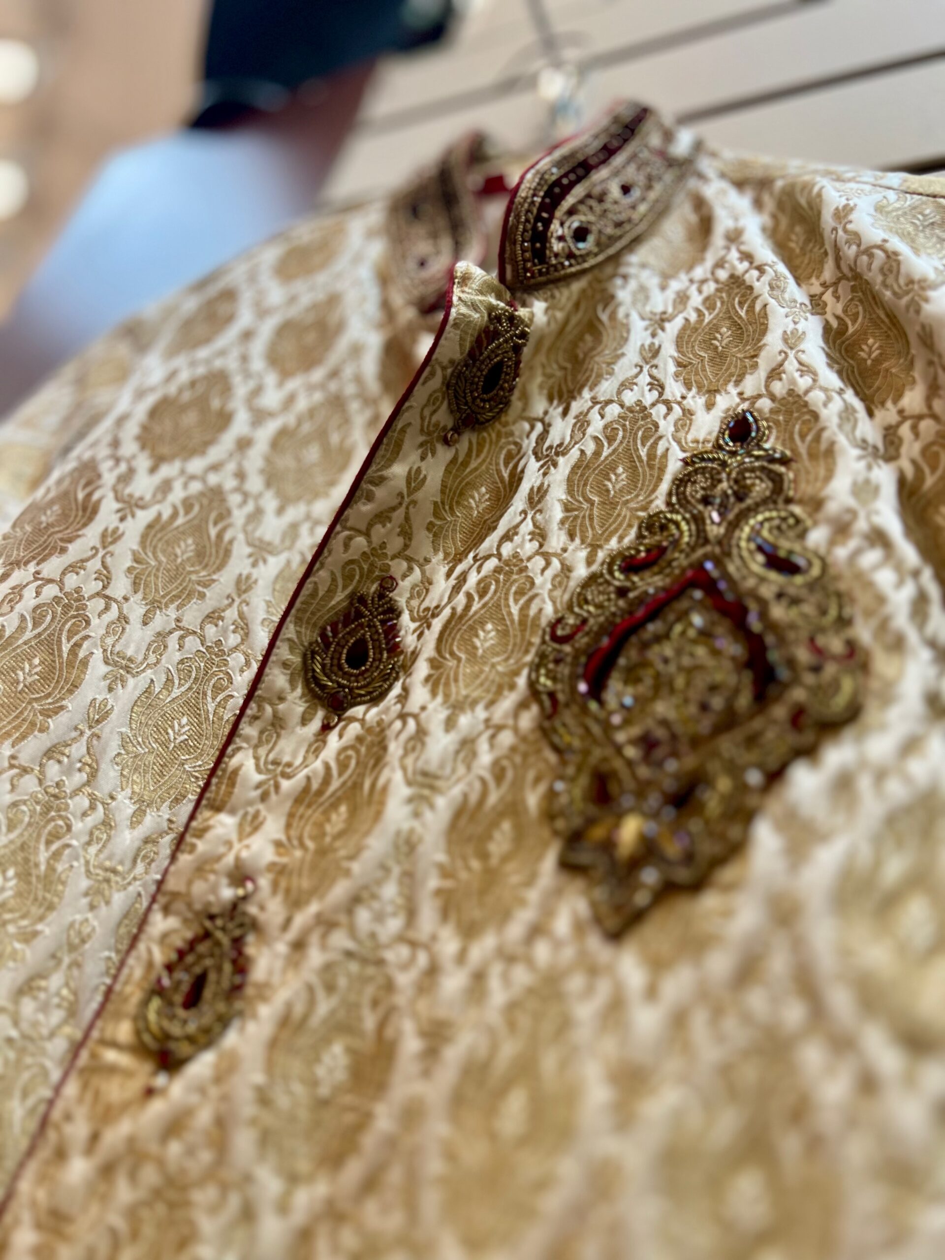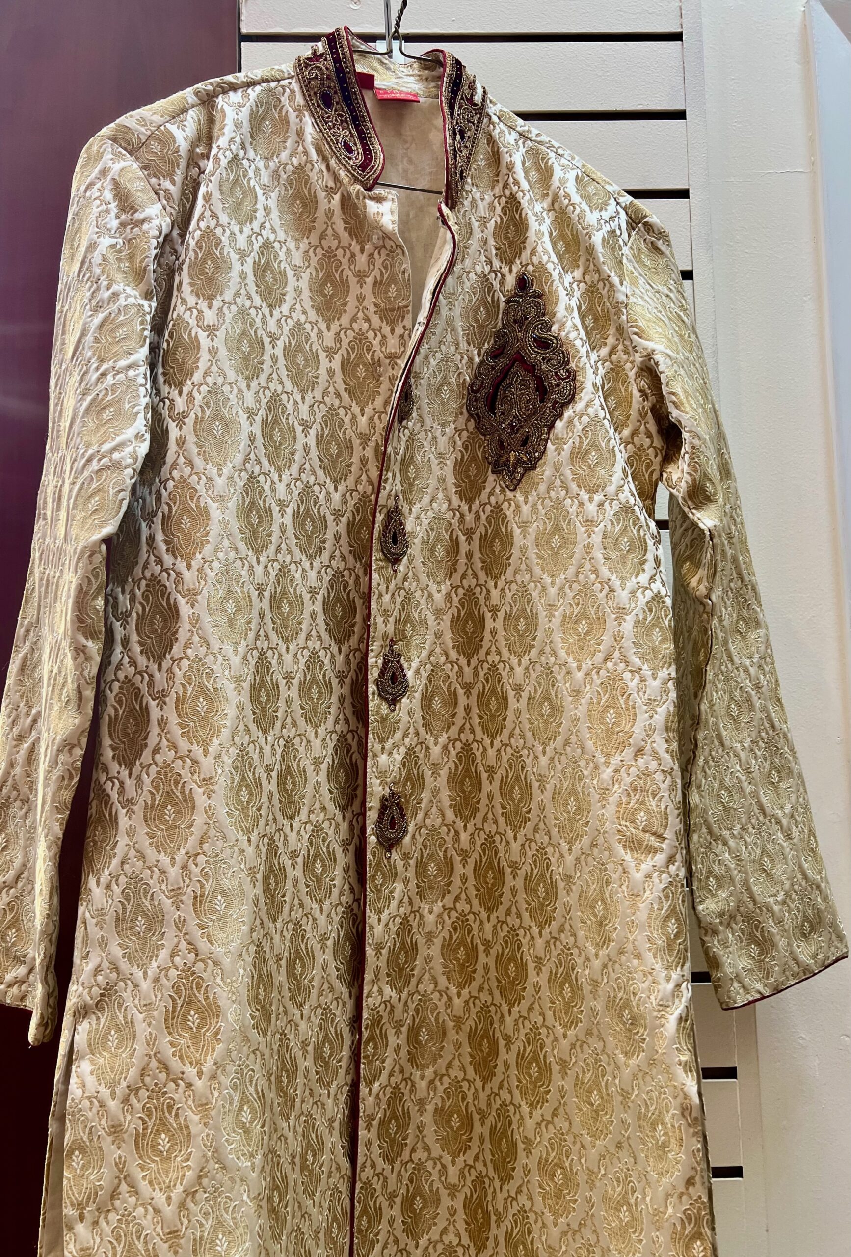 Pair it with matching churidar or pajama pants and classic mojris to complete the traditional look. Ideal for weddings, engagements, and cultural occasions where elegance meets heritage.