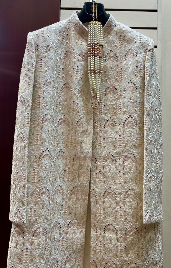 Pair it with matching churidar or pajama pants and classic mojris to complete the traditional look. Ideal for weddings, engagements, and cultural occasions where elegance meets heritage.
