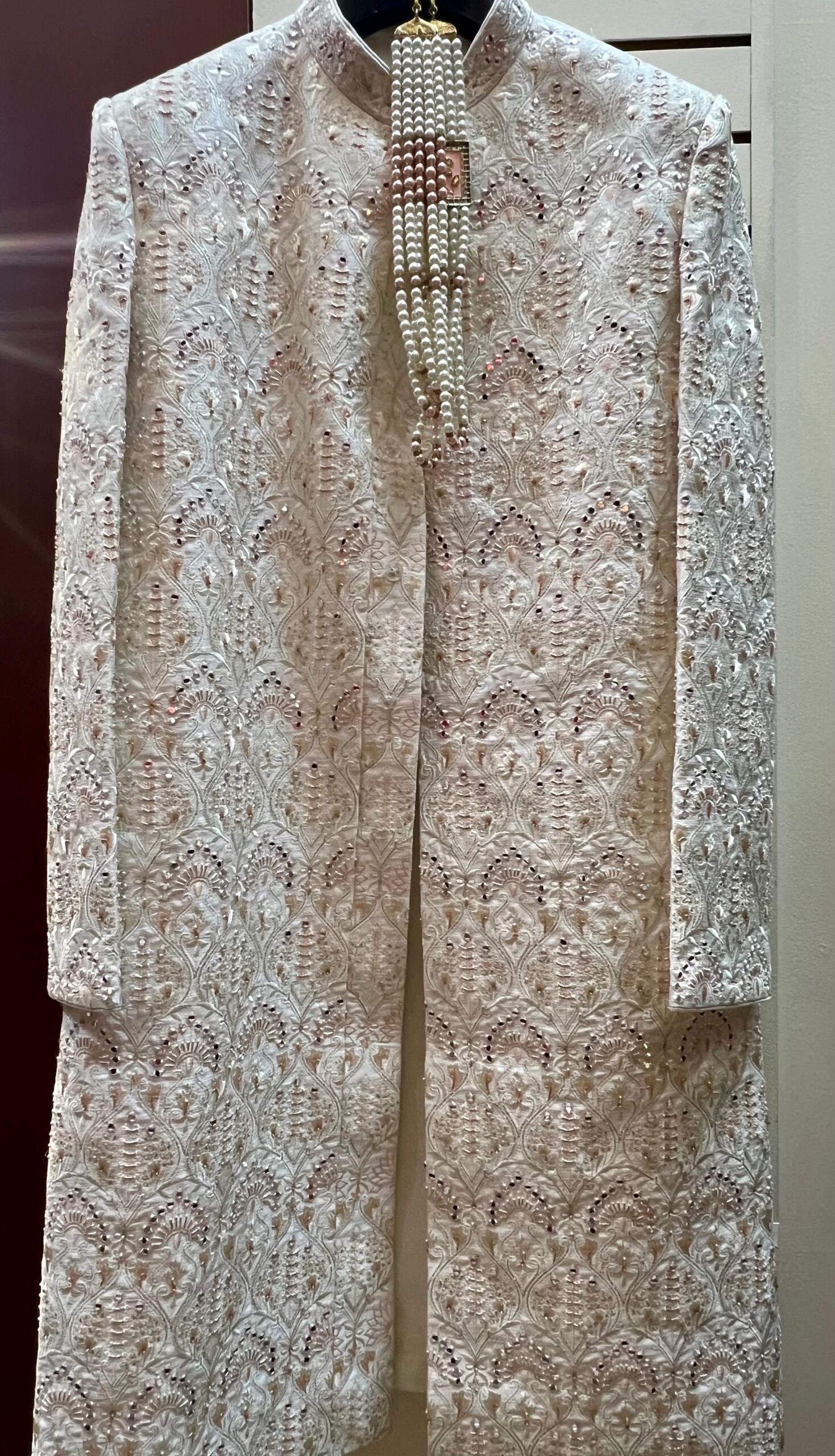 Pair it with matching churidar or pajama pants and classic mojris to complete the traditional look. Ideal for weddings, engagements, and cultural occasions where elegance meets heritage.
