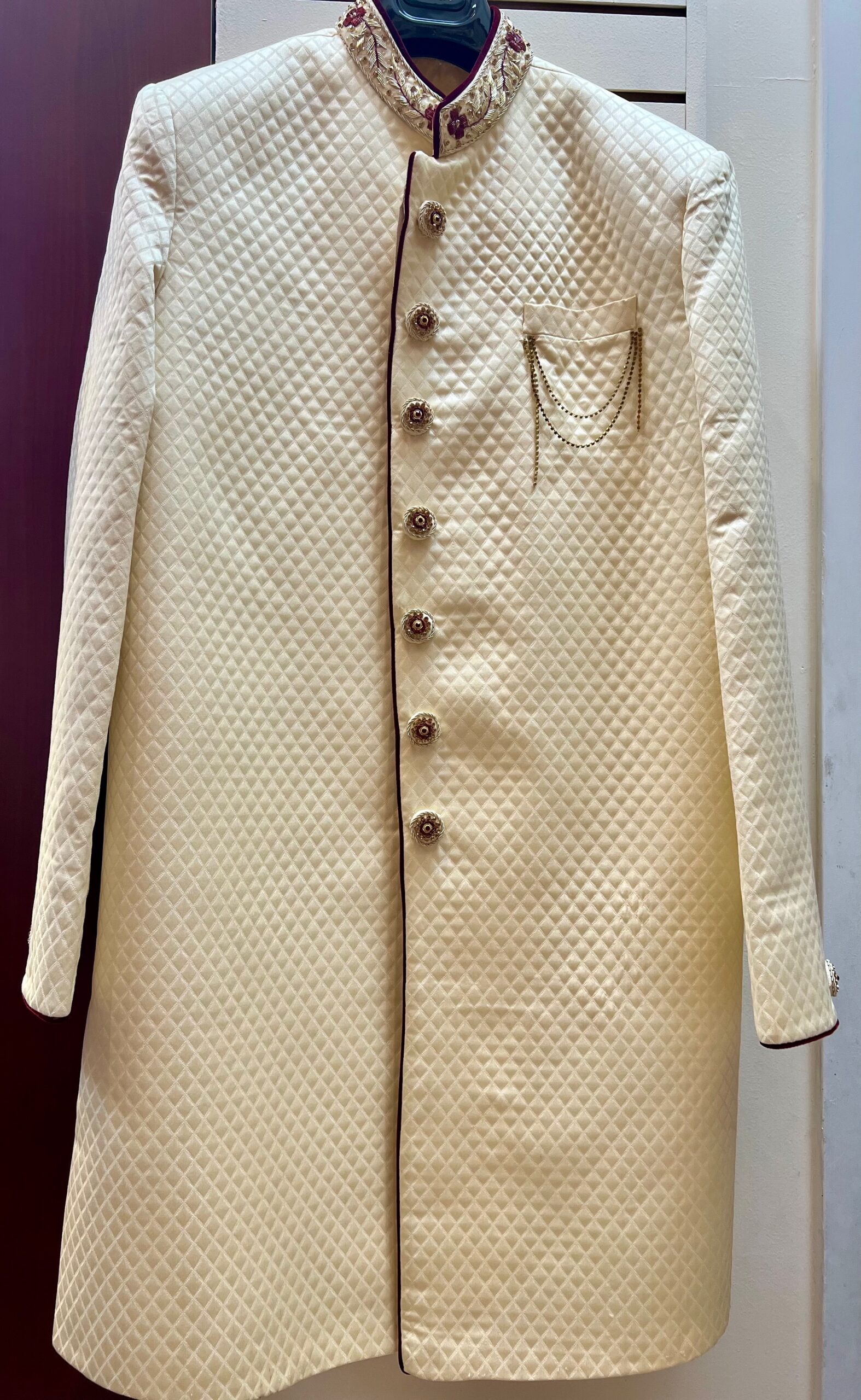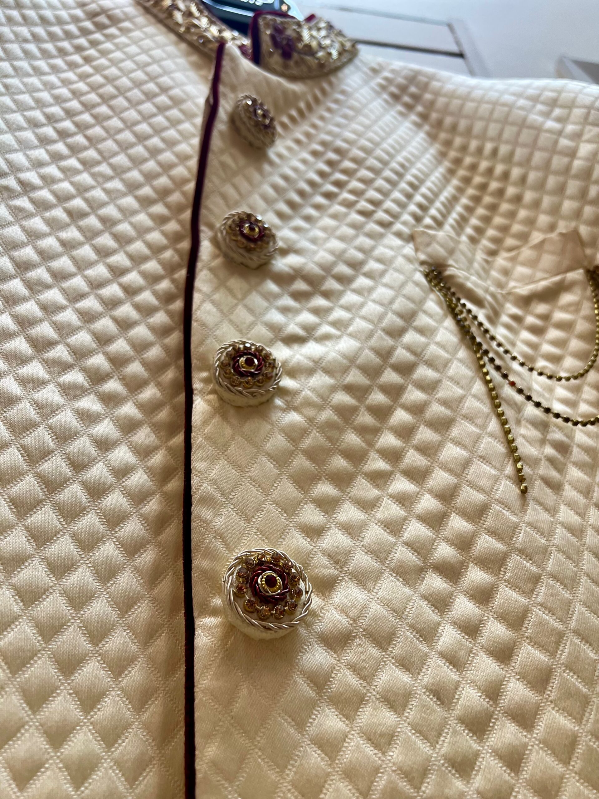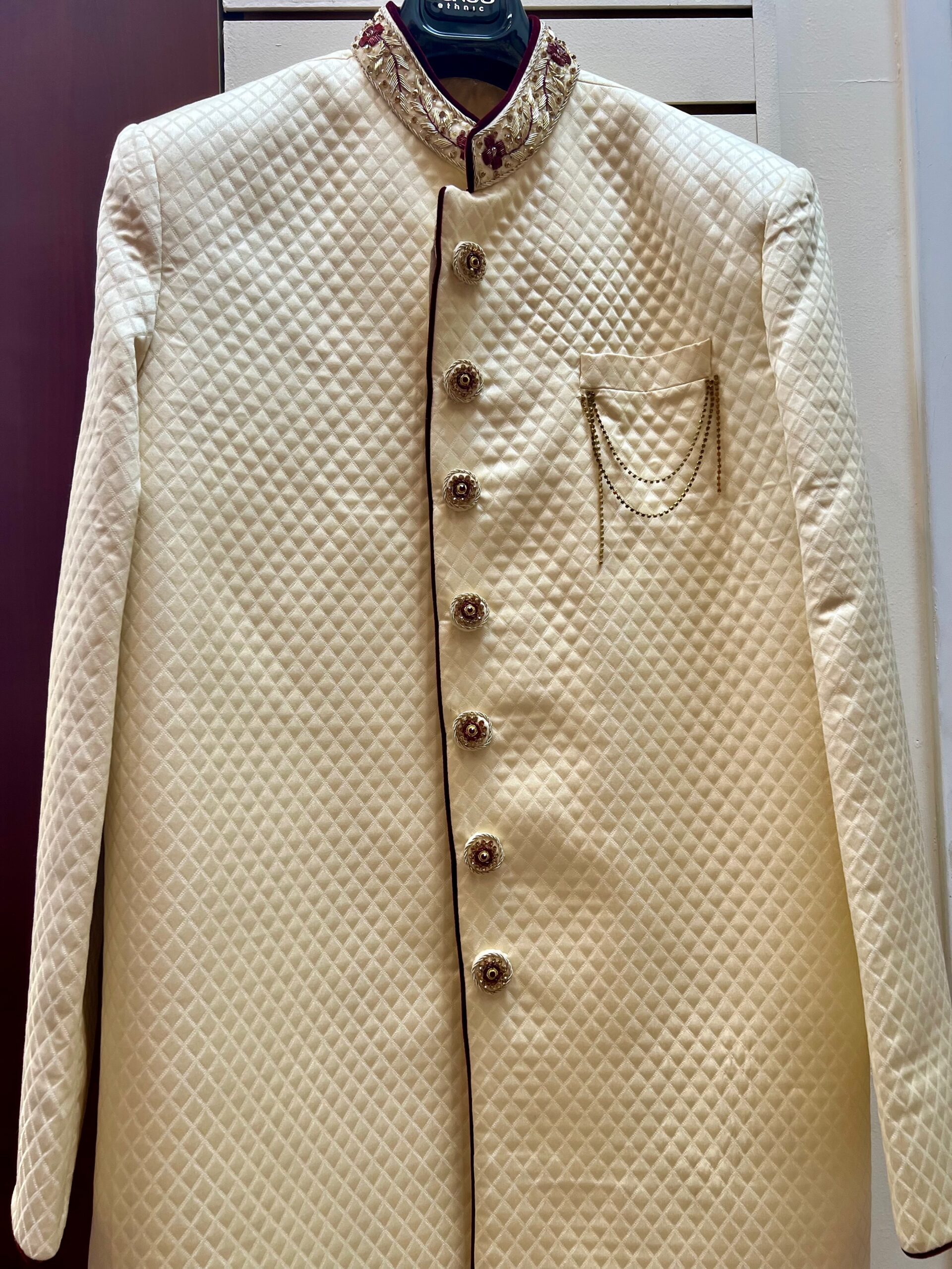 Pair it with matching churidar or pajama pants and classic mojris to complete the traditional look. Ideal for weddings, engagements, and cultural occasions where elegance meets heritage.