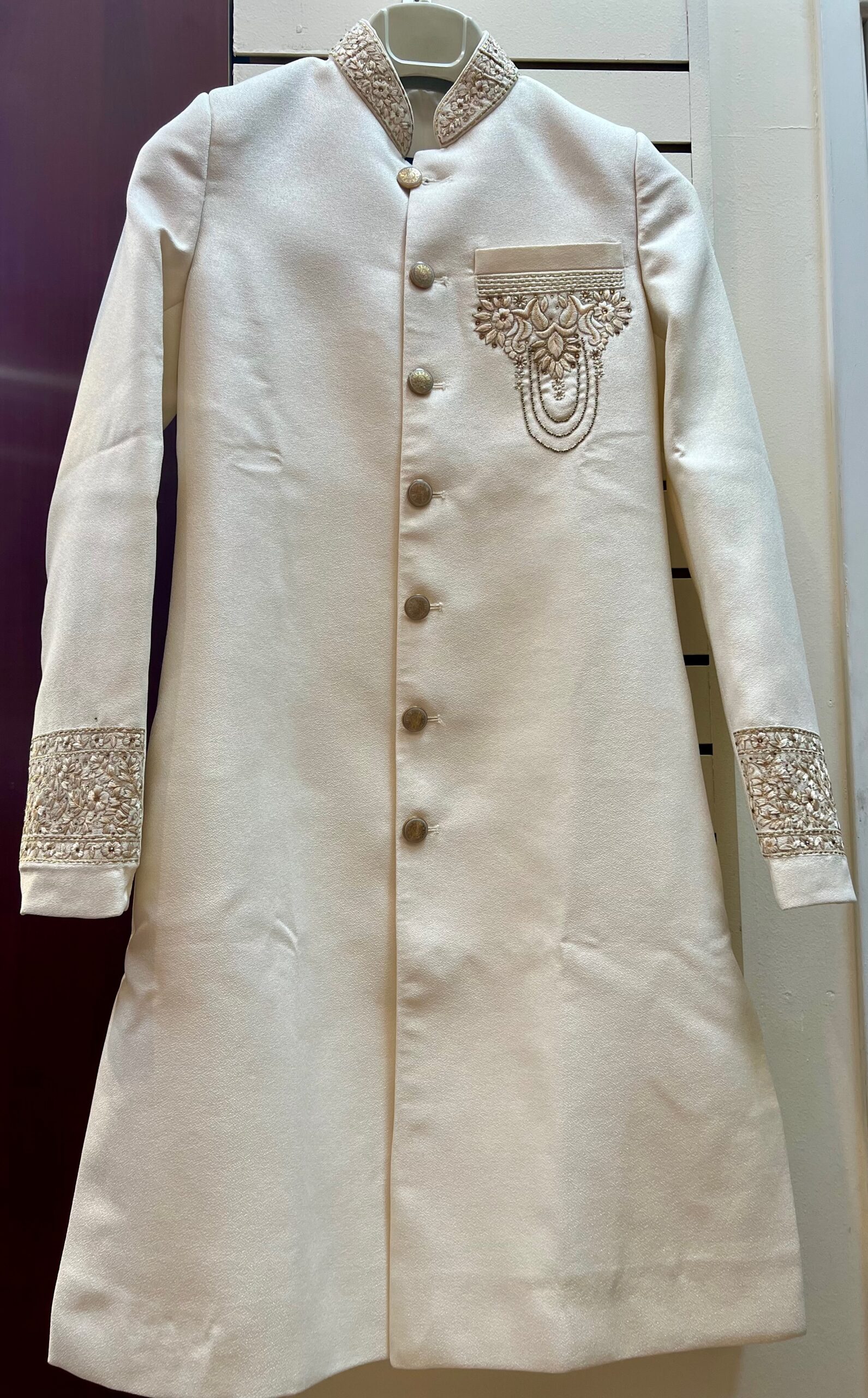 Beige Wedding Sherwani Gold Embroidered Kurta for men