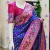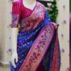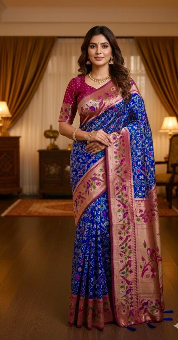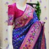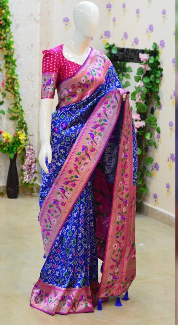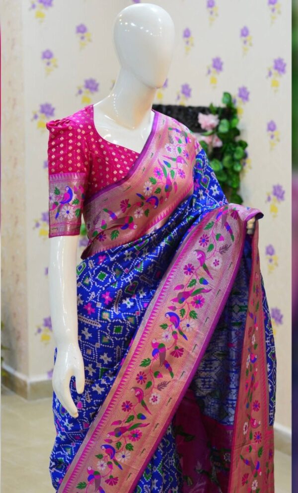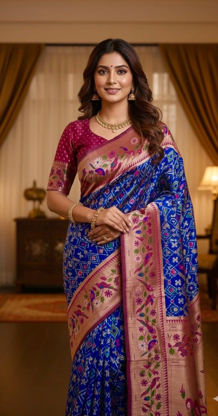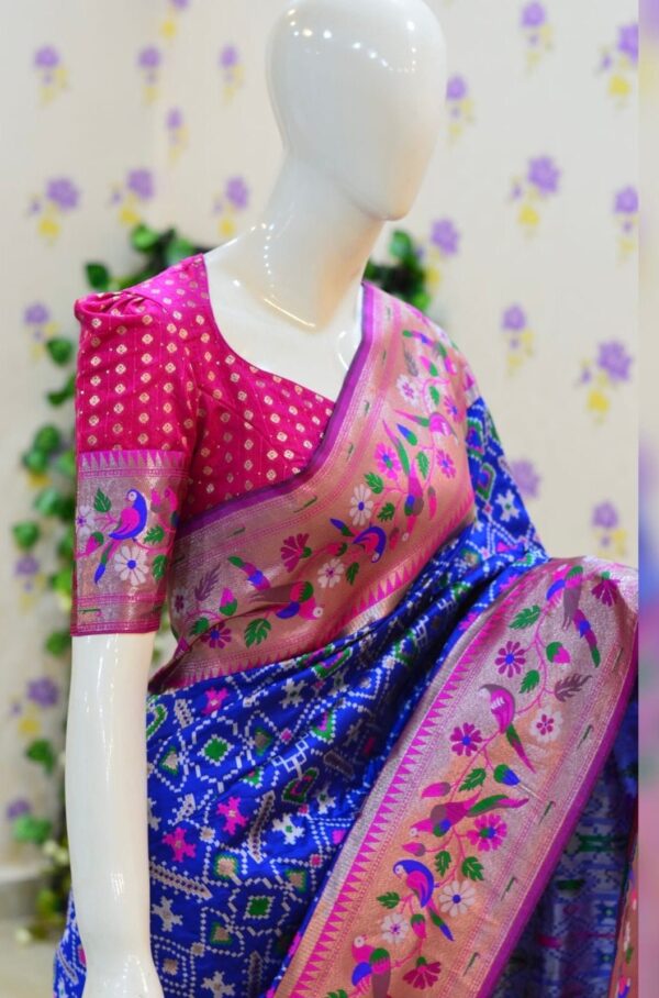 🪷🪷 Beautiful Blue patola paithani silk saree paired up with pretty banaras weaving blouse.