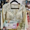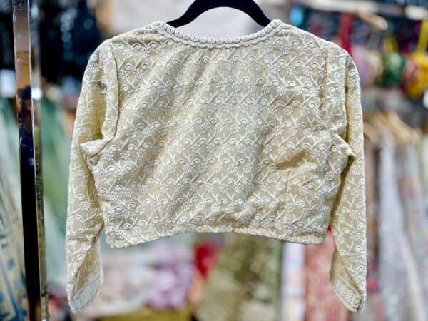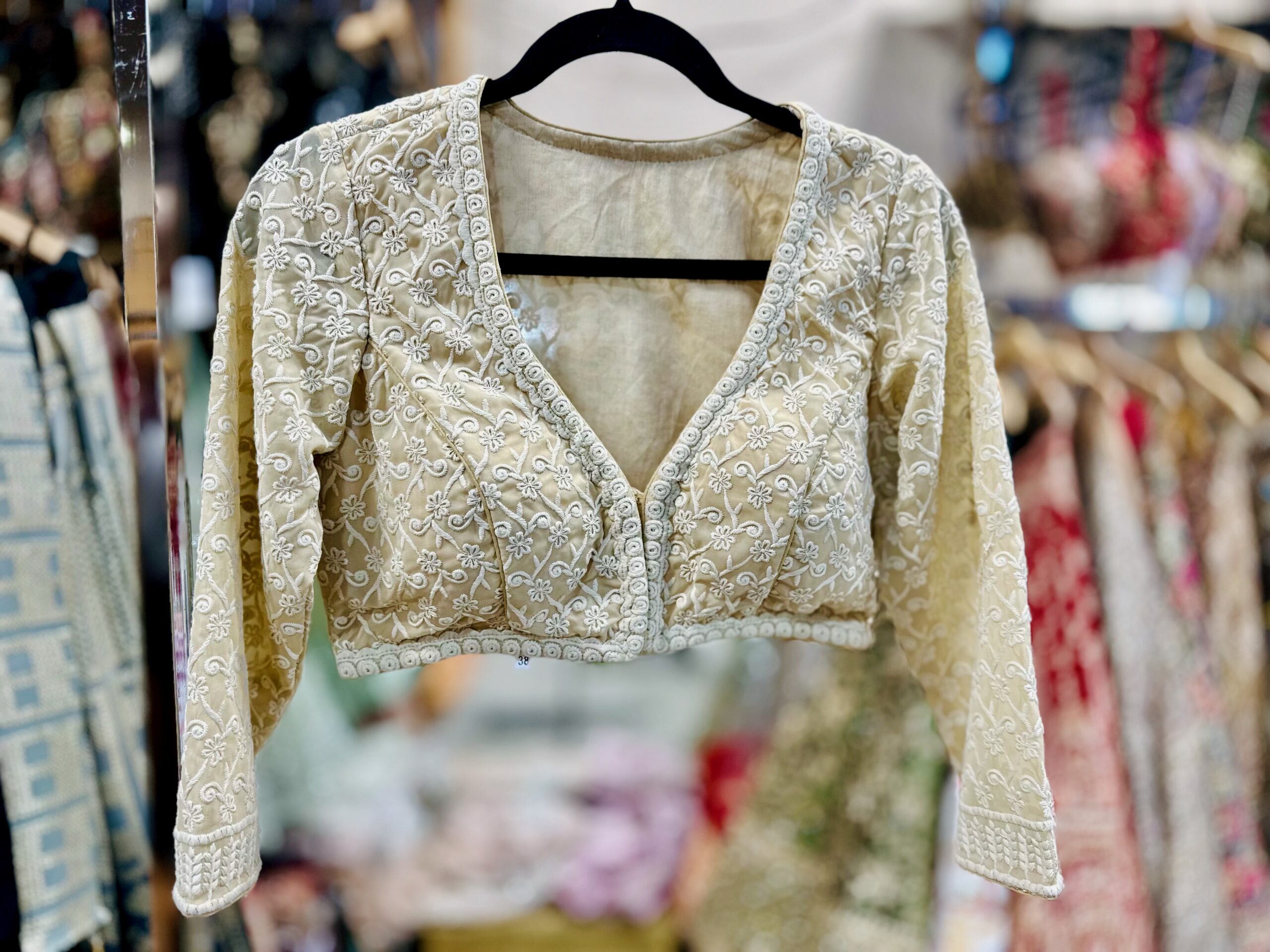 Beige Cream Colored Blouse with white Embroidery & full sleeves