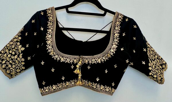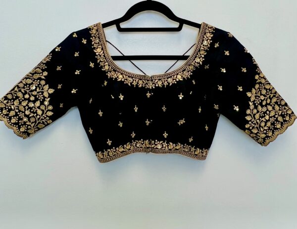 Timeless and graceful, this Black blouse features intricate embroidery that adds elegance and charm to any traditional look. Made in size 32, it can be expanded up to 3 sizes, offering a comfortable and adjustable fit. Perfect for pairing with sarees or lehengas, this blouse is a versatile addition to your festive wardrobe.
