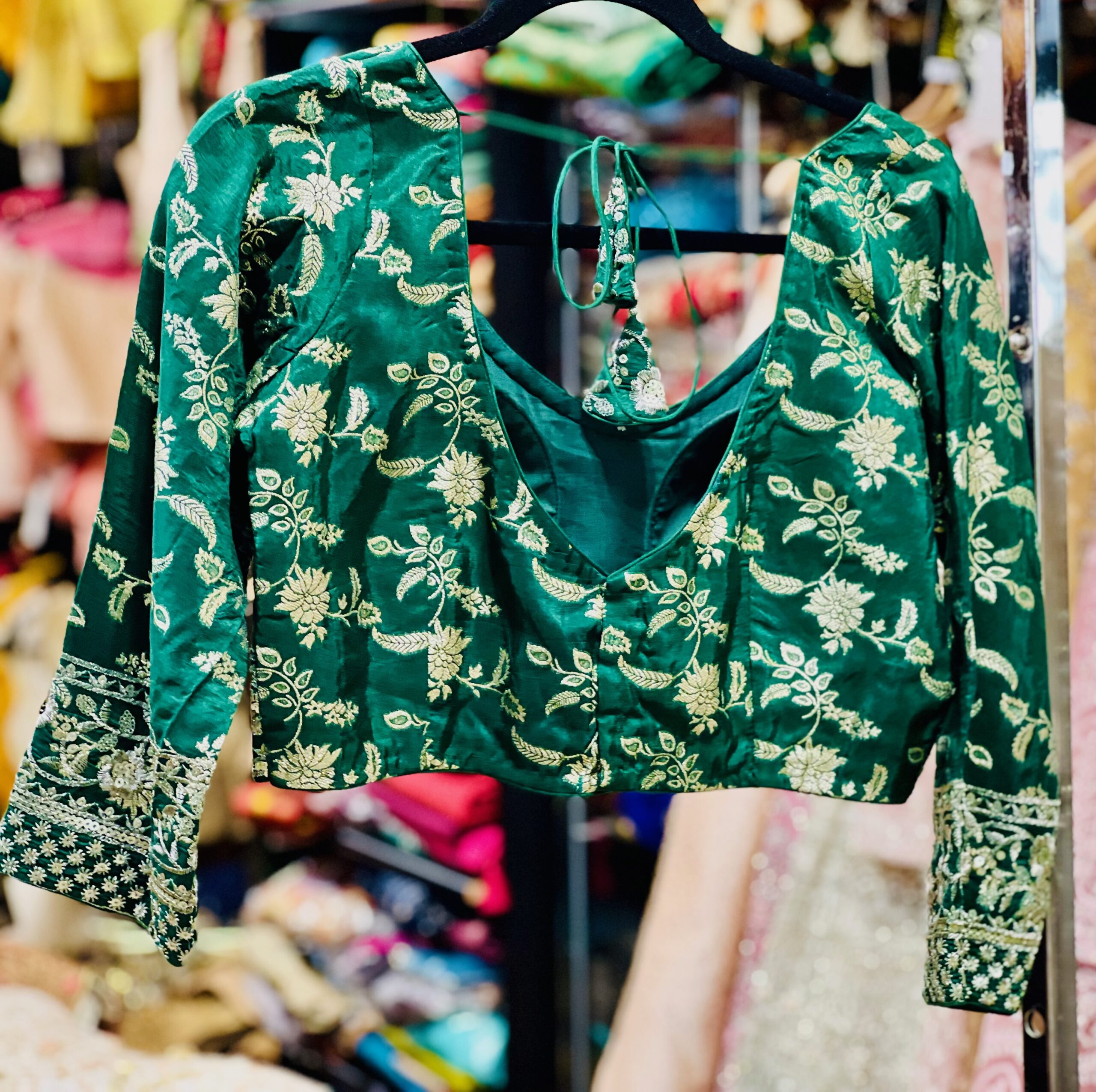 This graceful beige silk blouse exudes understated sophistication with its subtle embroidered motifs and rich patchwork border design. The deep neckline with tie-up tassels at the back adds a traditional charm, while the colorful patch detailing on the sleeves and waistline brings a vibrant ethnic touch. Perfect for pairing with sarees or lehengas, this blouse beautifully balances simplicity and elegance — ideal for festive occasions, cultural events, or wedding celebrations.