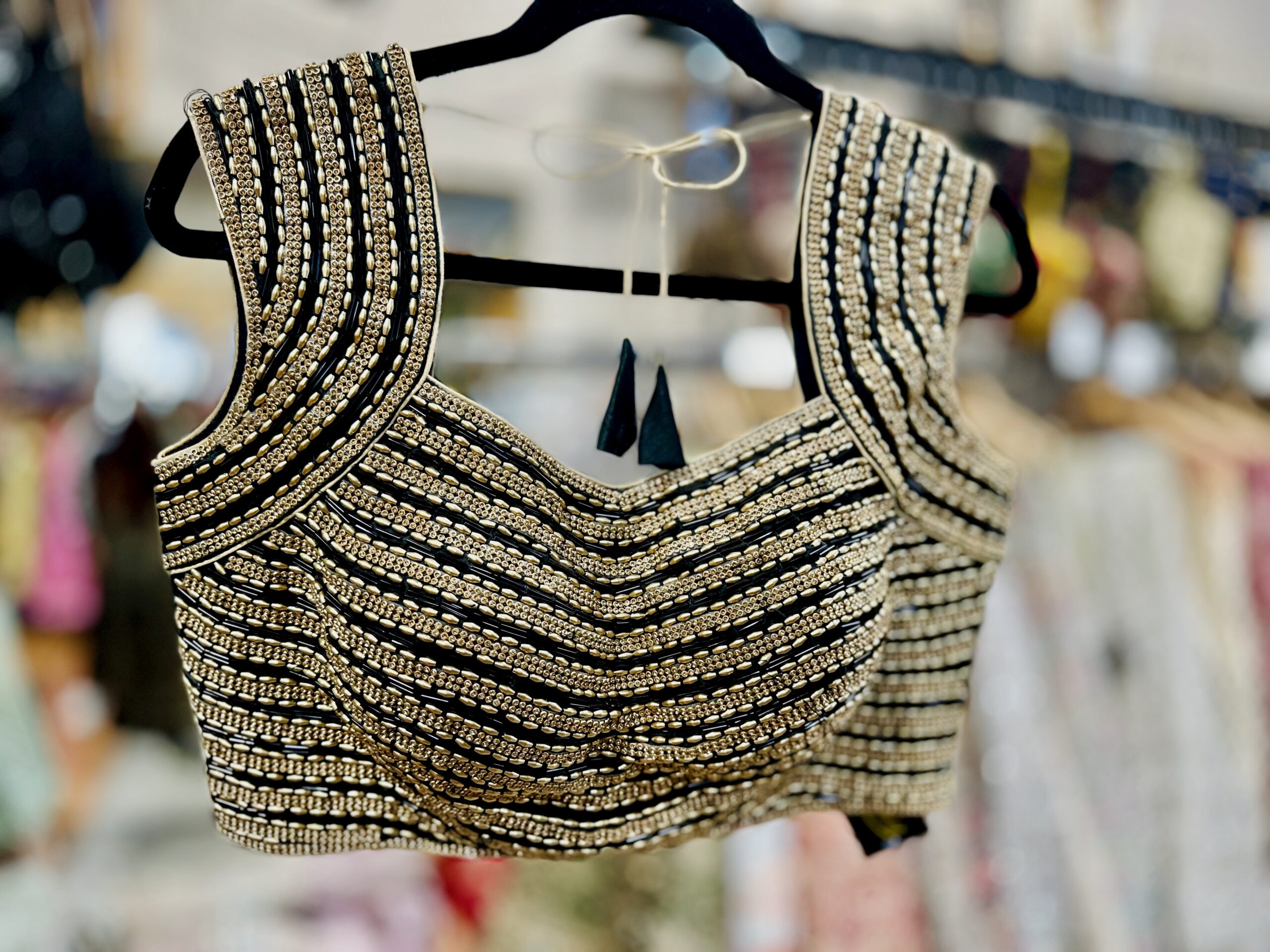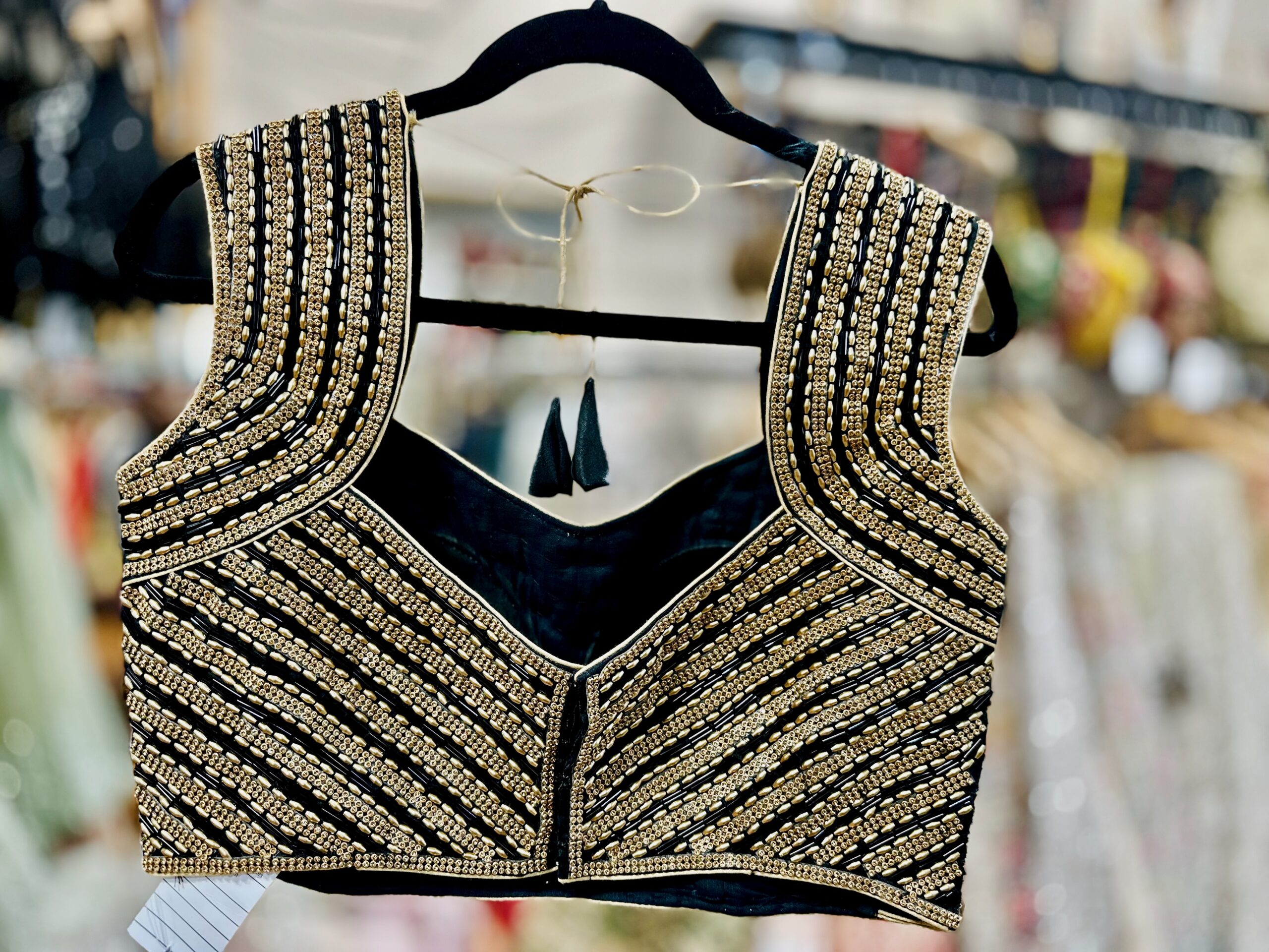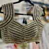 This graceful beige silk blouse exudes understated sophistication with its subtle embroidered motifs and rich patchwork border design. The deep neckline with tie-up tassels at the back adds a traditional charm, while the colorful patch detailing on the sleeves and waistline brings a vibrant ethnic touch. Perfect for pairing with sarees or lehengas, this blouse beautifully balances simplicity and elegance — ideal for festive occasions, cultural events, or wedding celebrations.