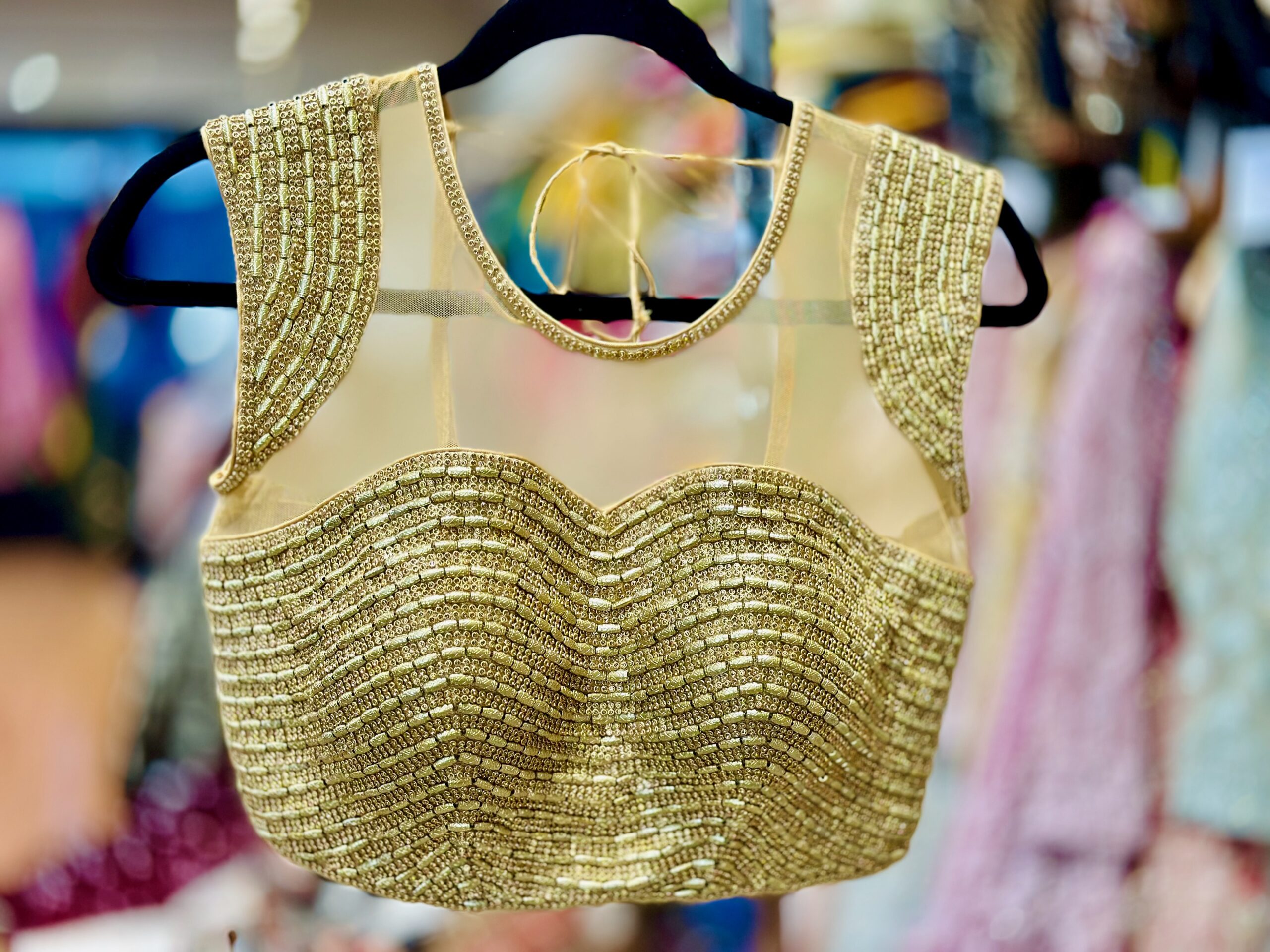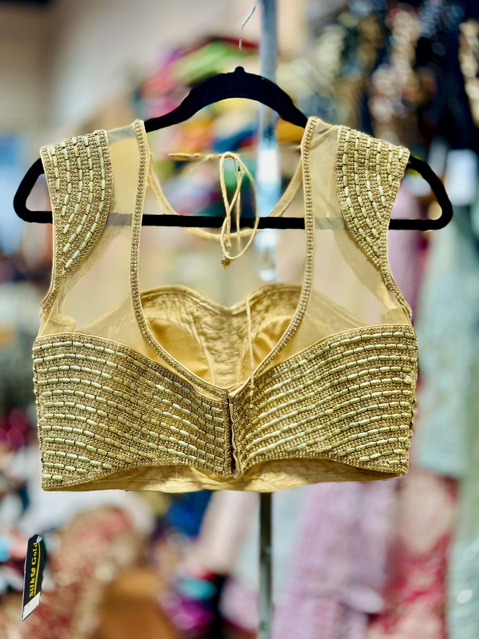 Golden Sequin Embellishment – Intricately hand-done beadwork for a luxurious shimmer.