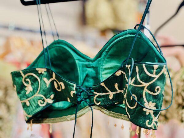 This high-end designer blouse is a statement of elegance and sophistication. Expertly tailored with premium fabrics and intricate craftsmanship, it features refined detailing that enhances its luxurious appeal. Designed to complement sarees and lehengas alike, the blouse offers a perfect balance of style and comfort, ensuring a flattering fit and timeless charm. Ideal for weddings, festive occasions, and special events, this versatile piece adds a touch of glamour and grace to every ensemble.