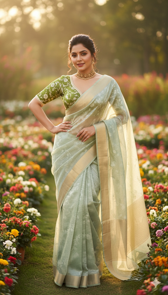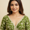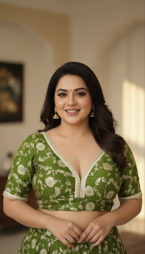 Authentic Banarasi silk fabric, carefully crafted to flatter your figure. Inspired by Sabyasachi, the blouse features a deep neckline for an alluring look. This blouse is a size 36 and has ample margin to accommodate up to a size 38 comfortably.