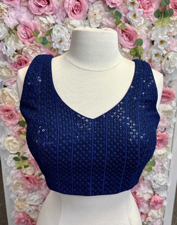 Navy Blue Self-Sequins Blouse – Size 38 (Expandable Up to 3 Sizes, Back Closure, Optional Short Sleeves)