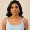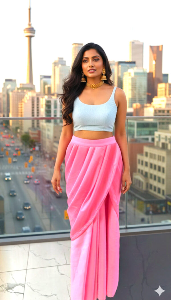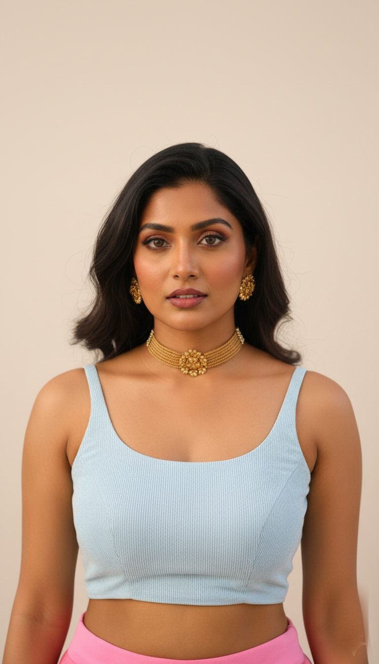 Shimmery sky blue sleeveless blouse perfect for any occasion, saree or skirt, you can complement it with class