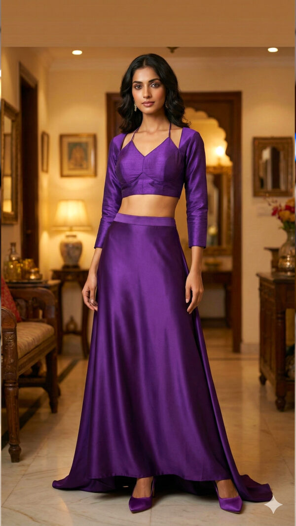 Redefine your ethnic wardrobe with this Violet Strappy Bustier Blouse, blending contemporary glamour with timeless Indian craftsmanship. Designed for the modern woman, this blouse is perfect for pairing with sarees, lehengas, or fusion skirts, making it a versatile statement piece for parties, weddings, or festive occasions.