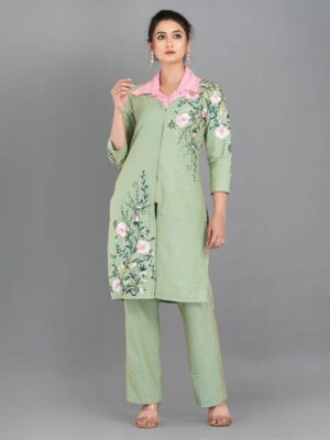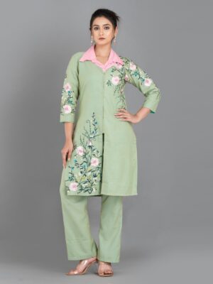 This chic full-sleeve blouse blends contemporary style with classic grace. Crafted from soft, breathable fabric, it features a flattering silhouette that drapes beautifully on the body. The refined detailing—such as delicate buttons, subtle pleats, or a sleek collar—adds a touch of sophistication, making it ideal for both workwear and evening occasions. Whether paired with tailored trousers or a flowing skirt, this blouse is the epitome of effortless elegance and versatile style.