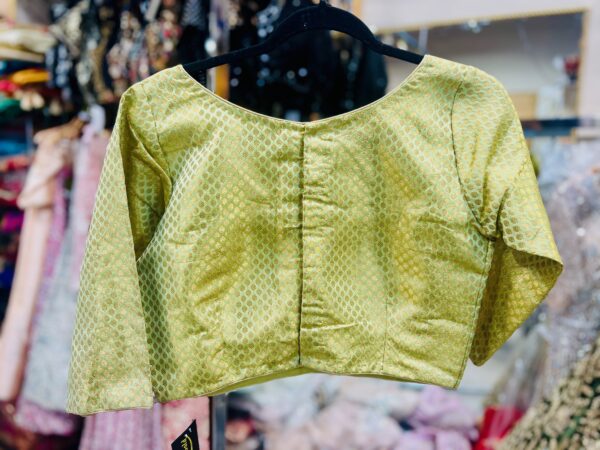 This graceful beige silk blouse exudes understated sophistication with its subtle embroidered motifs and rich patchwork border design. The deep neckline with tie-up tassels at the back adds a traditional charm, while the colorful patch detailing on the sleeves and waistline brings a vibrant ethnic touch. Perfect for pairing with sarees or lehengas, this blouse beautifully balances simplicity and elegance — ideal for festive occasions, cultural events, or wedding celebrations.