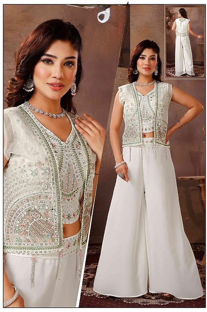 * Design: Intricately embroidered sleeveless crop top paired with a matching open-front koti (waistcoat). 🌸