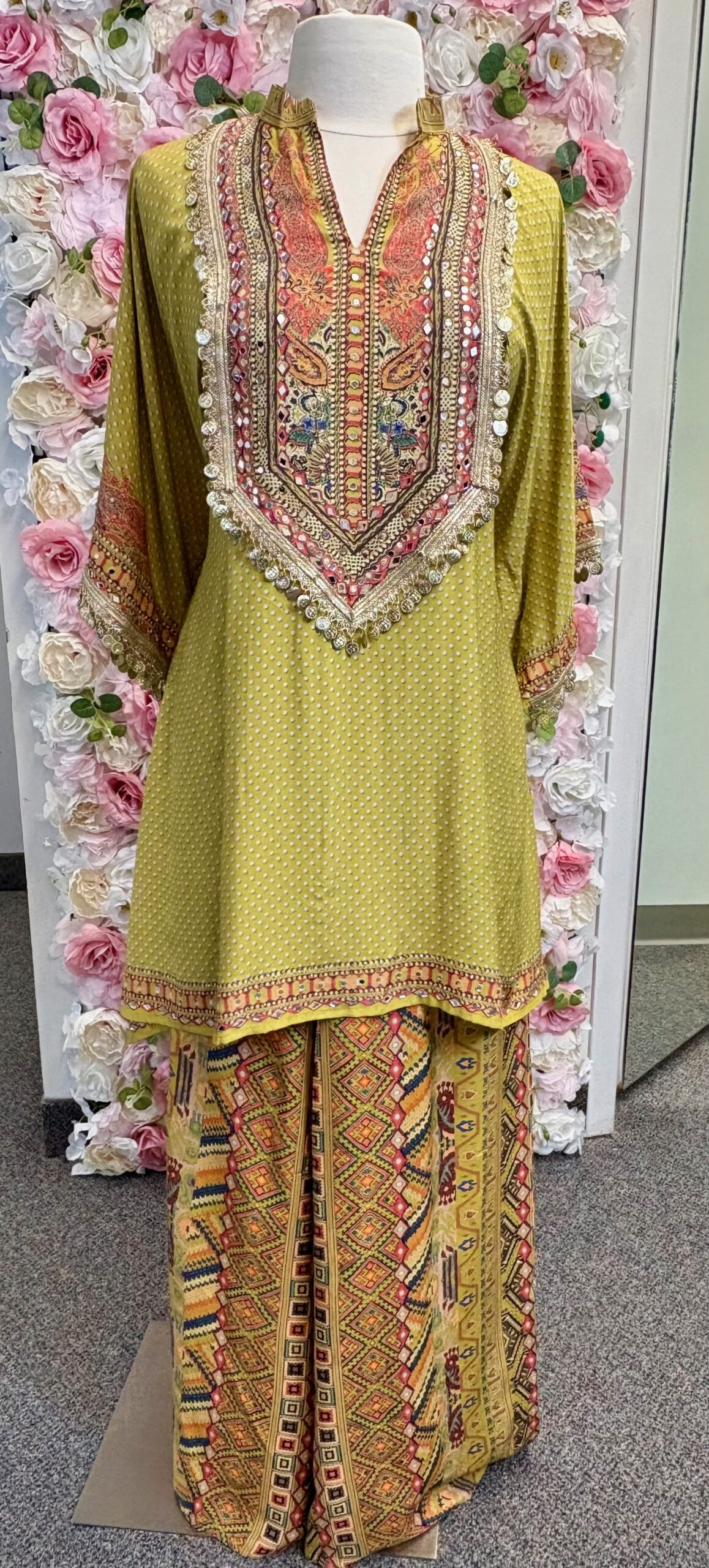 Step out in style with this radiant kaftan and palazzo set that effortlessly combines comfort with cultural flair.