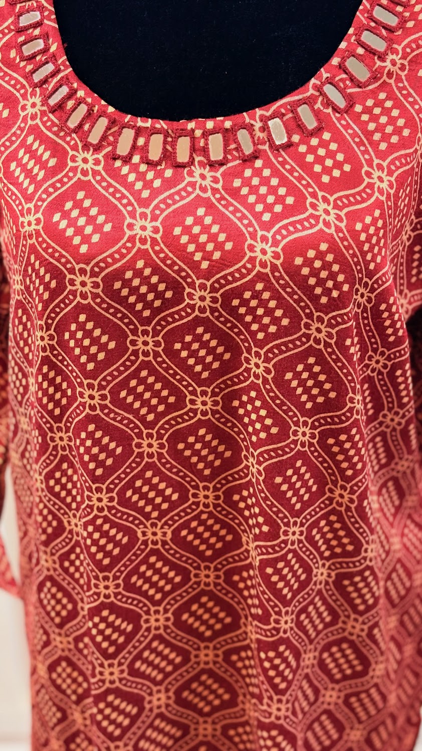 This piece is a simple, elegant everyday ethnic kurta with subtle festive detailing. Here’s a full breakdown: