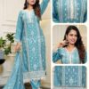 Step into serenity with this stunning teal blue ethnic ensemble, featuring intricate craftsmanship and a timeless silhouette. 💙