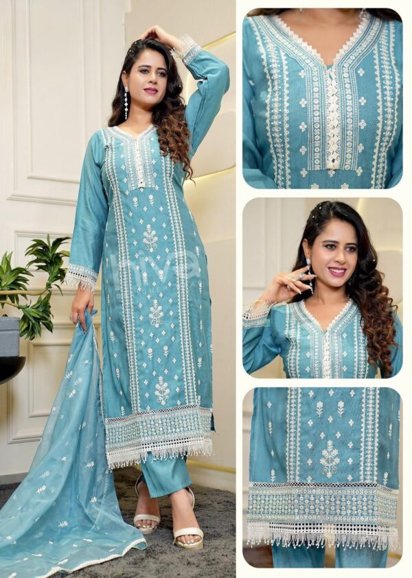 * Dupatta: A matching lightweight dupatta with subtle embroidered accents and a lace border. 🕊️