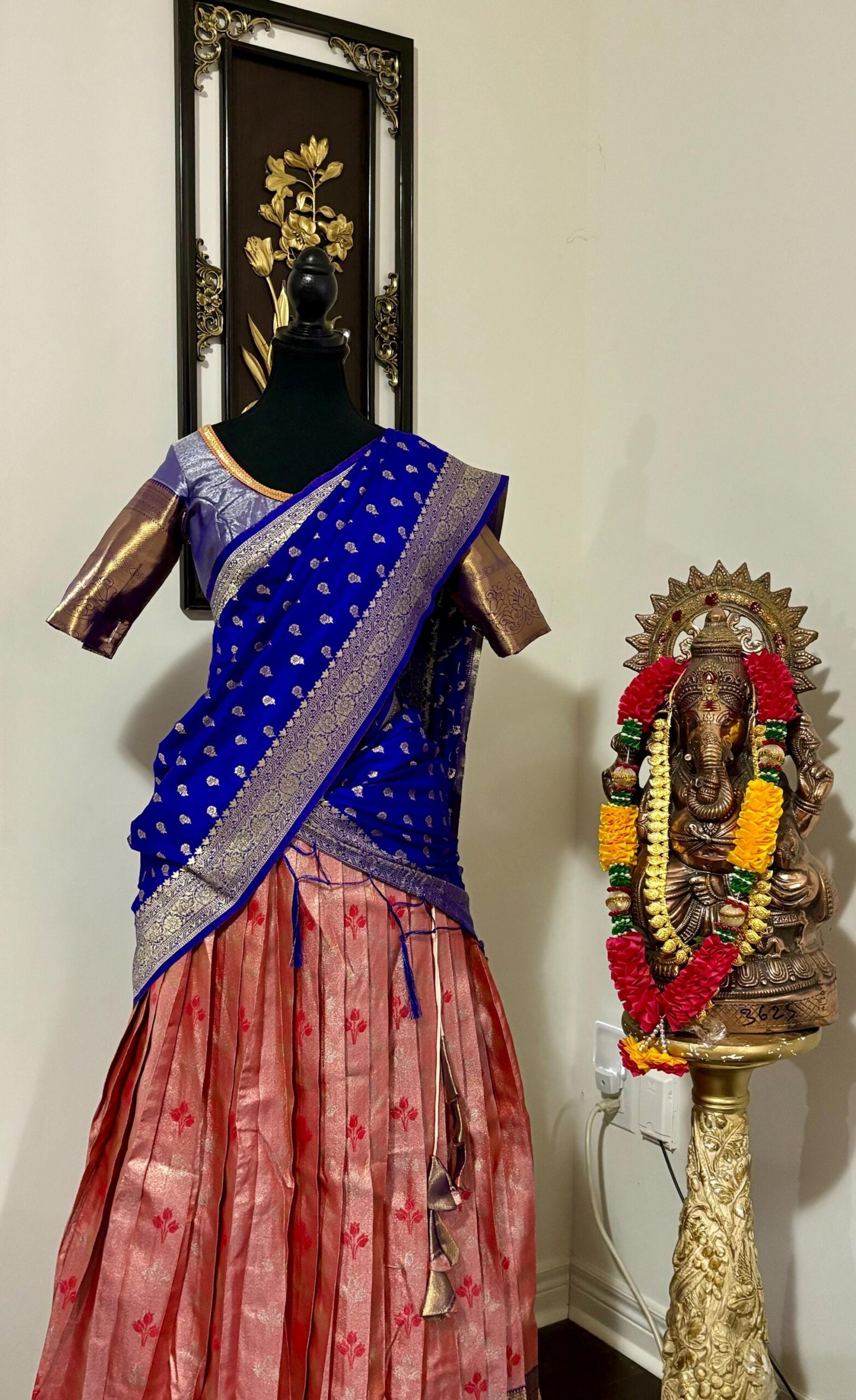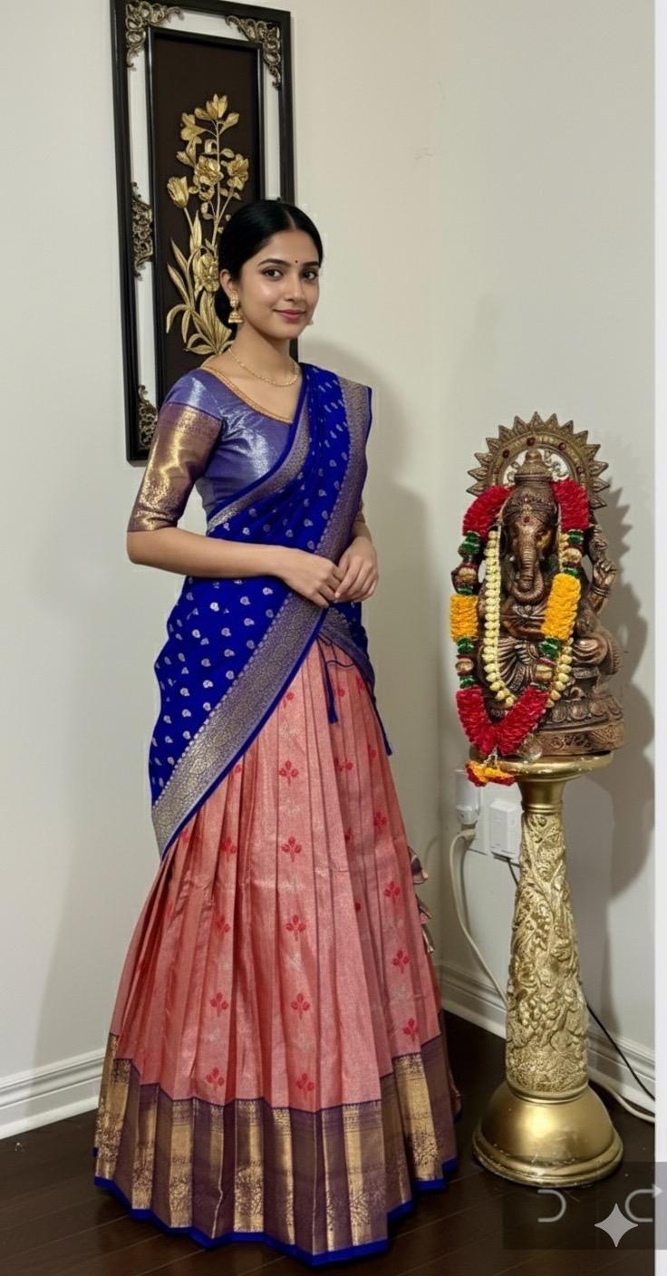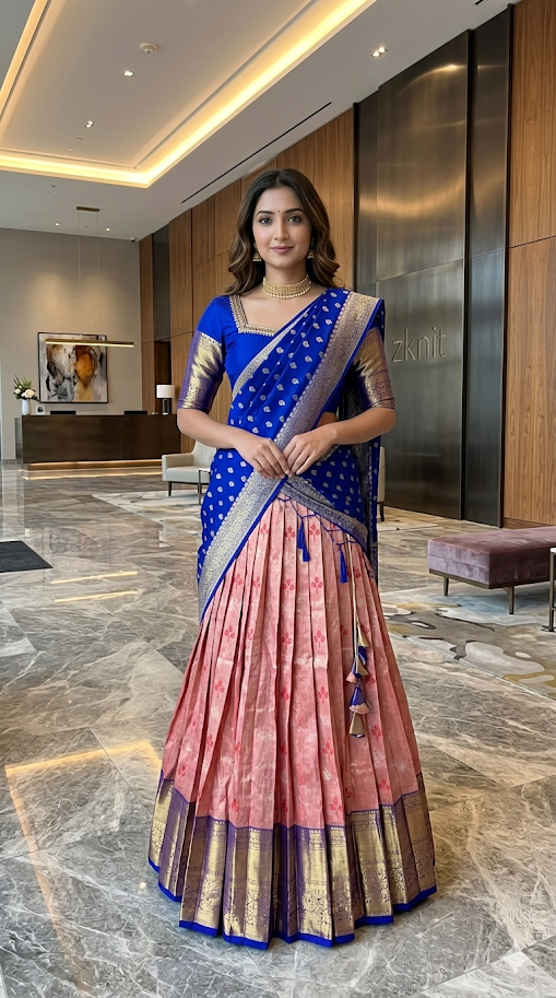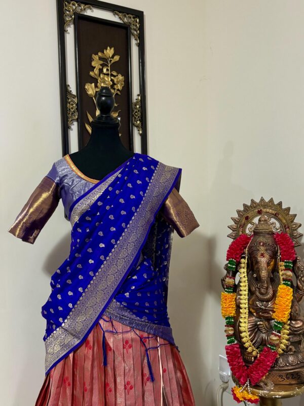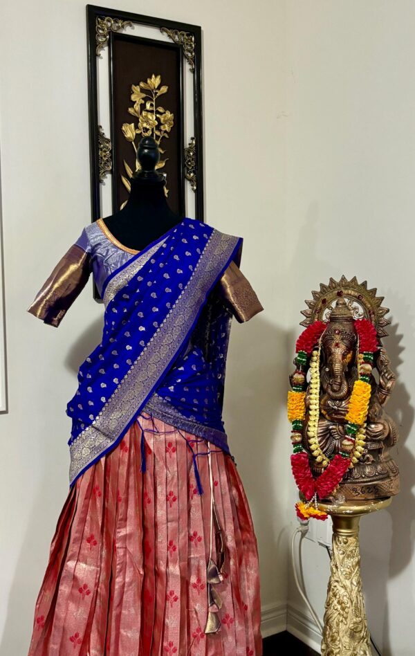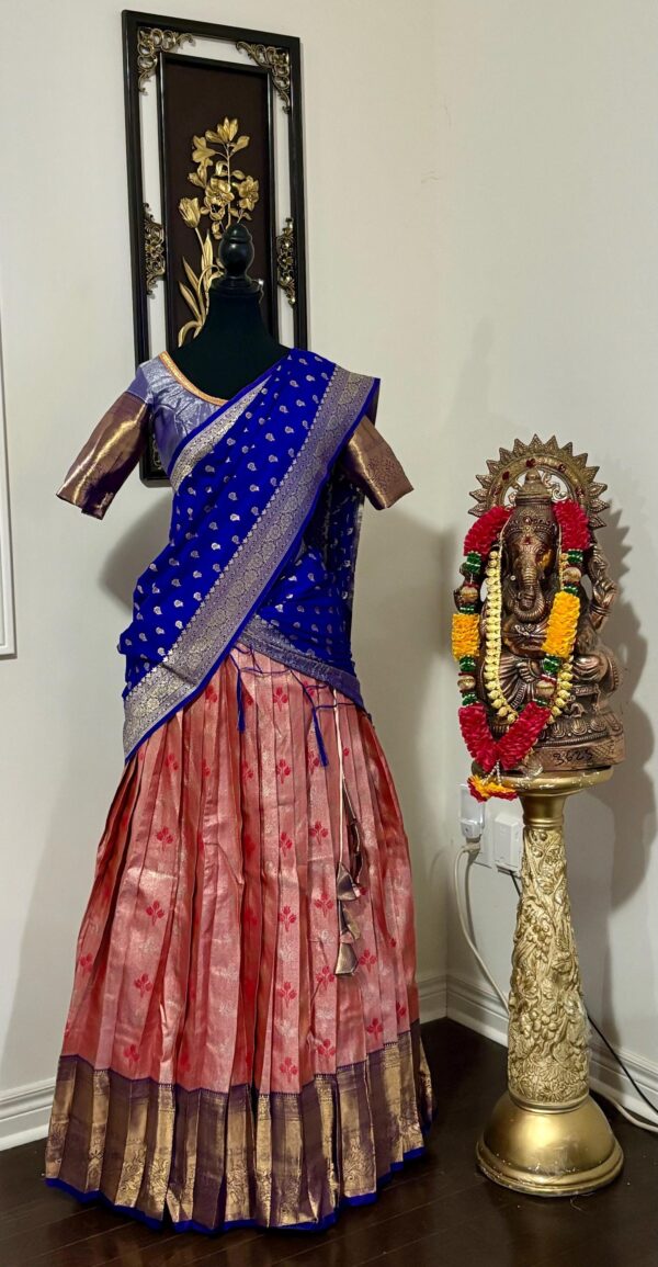 Blue Pink Silk Lehenga Kanchi pattu