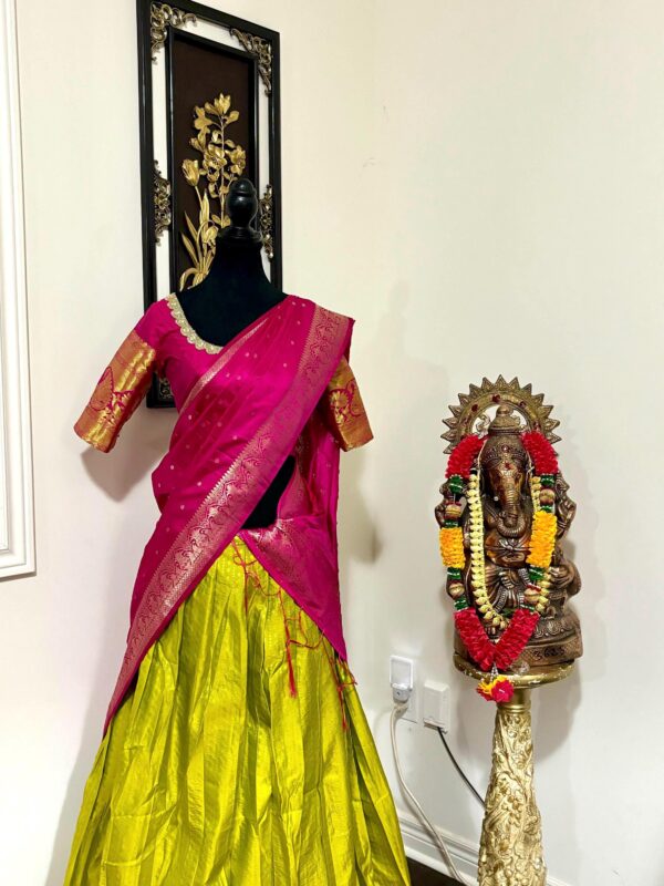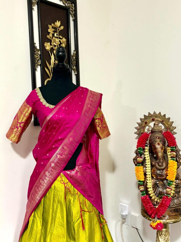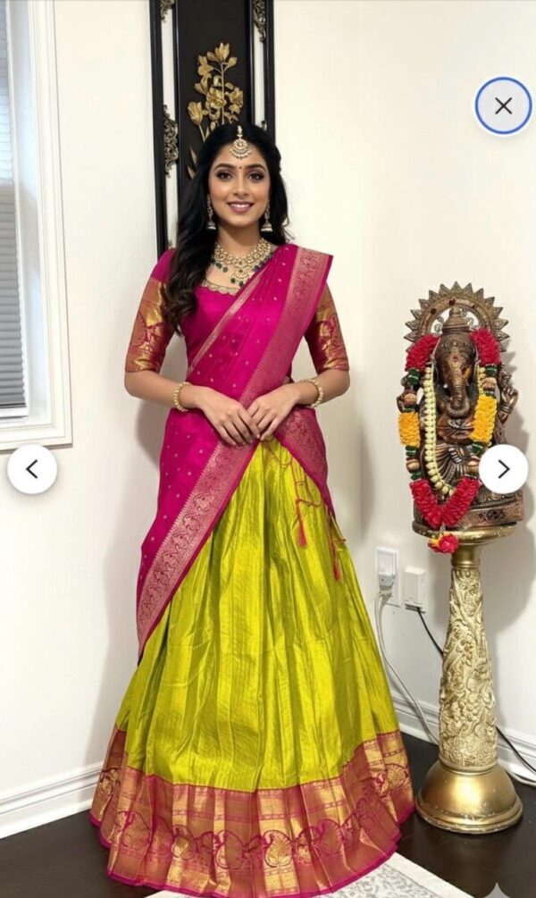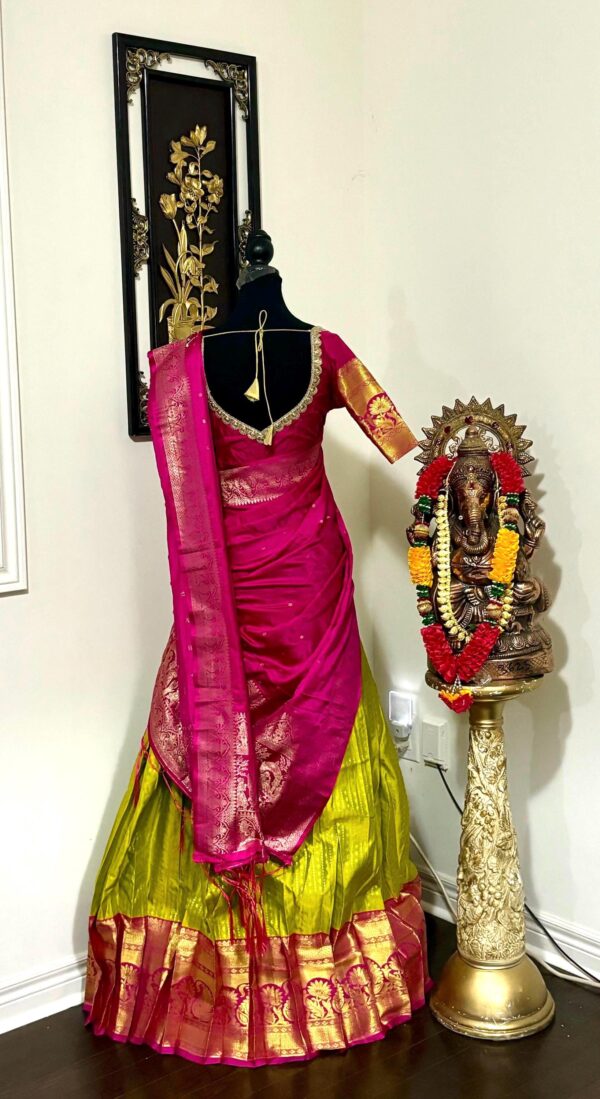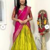 Yellow Pink Silk Lehenga Kanchi pattu Kanjeevaram Silk Lehenga
