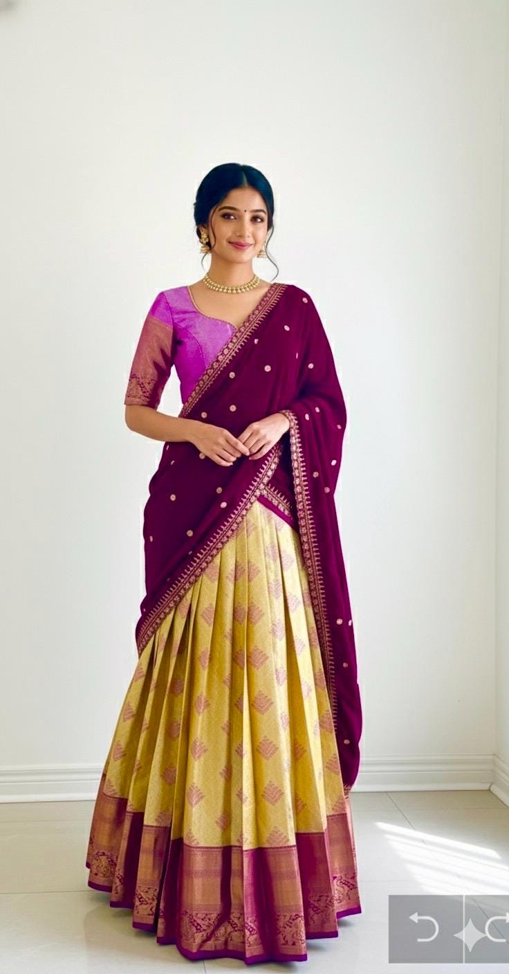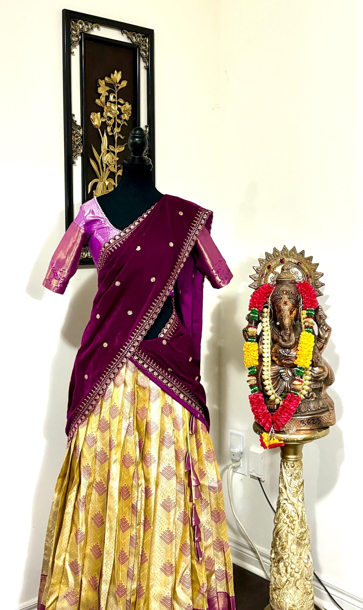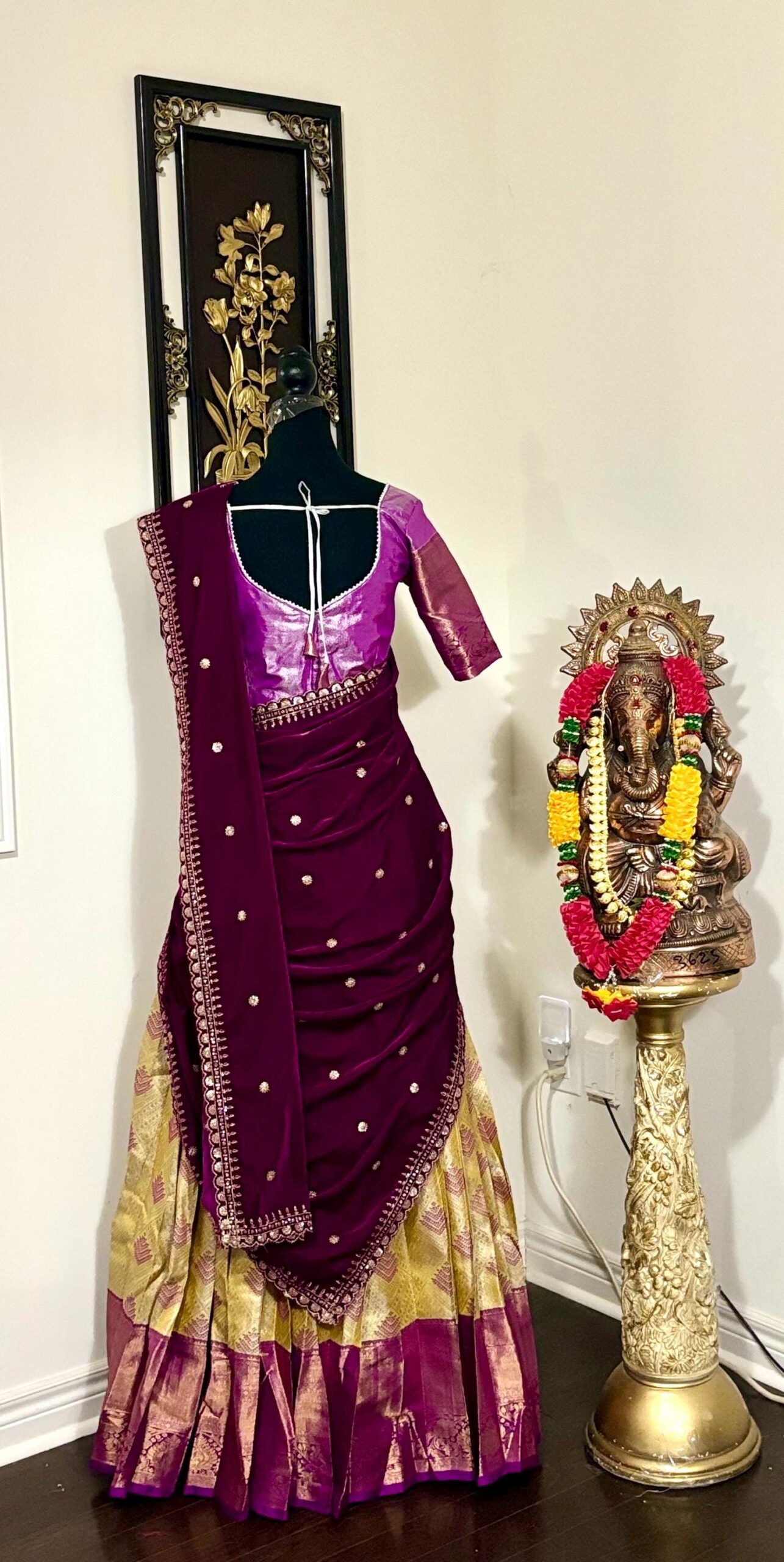 Yellow Purple Silk Lehenga Kanchi pattu Kanjeevaram Silk Lehenga