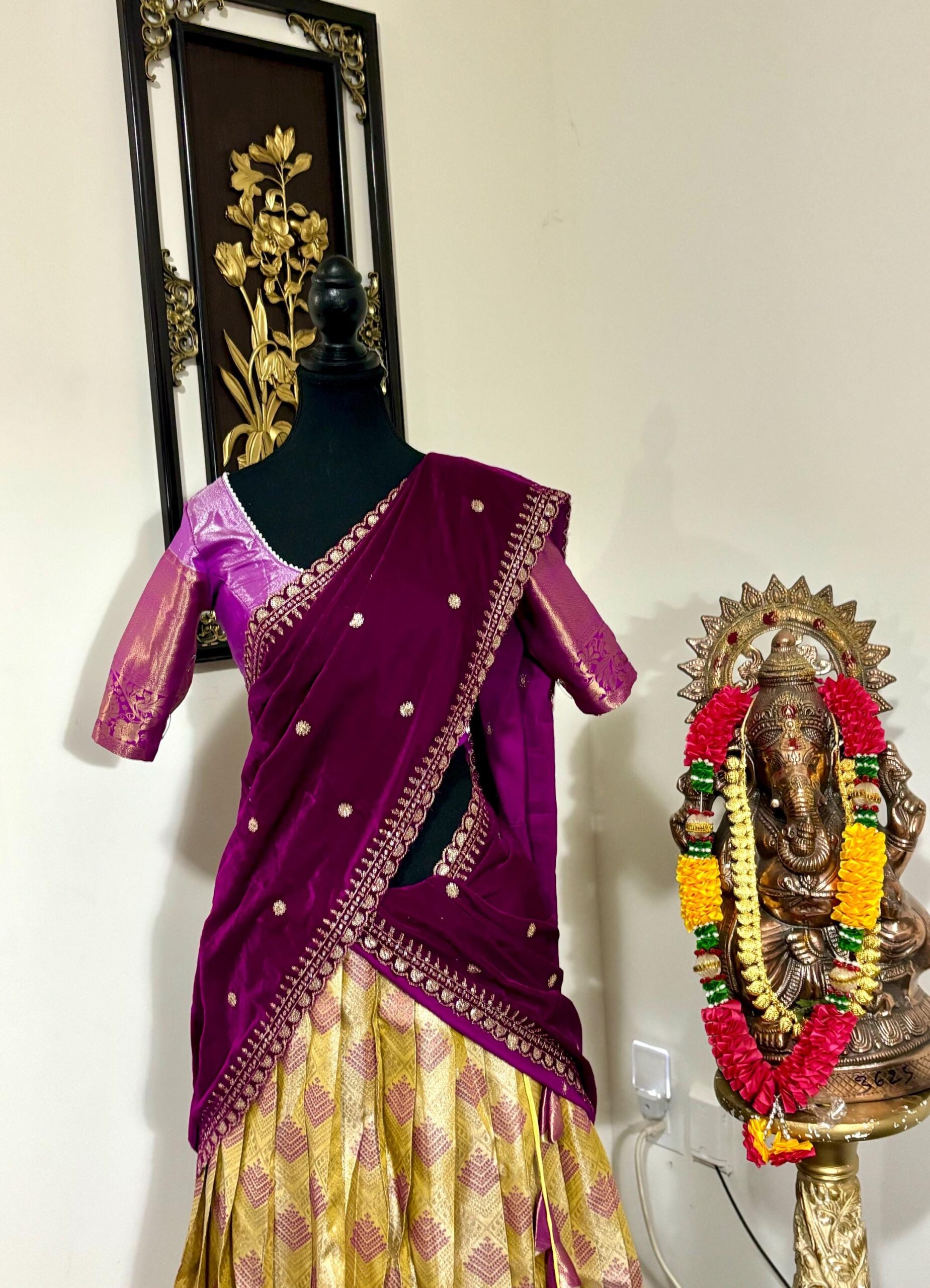 Exclusive soft quality Kanchi pattu / Kanjeevaram silk lehenga with Kanchi boarder rich Kanchi border paired with mokhmal dupatta and blouse and high quality soft lining for baby skin
