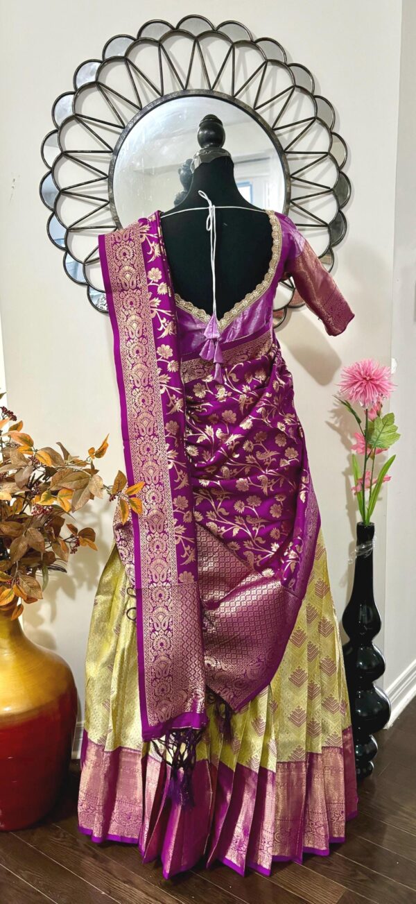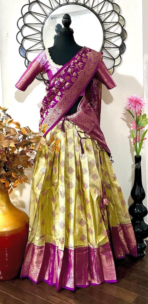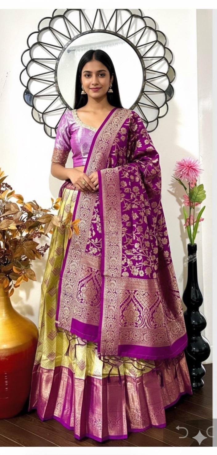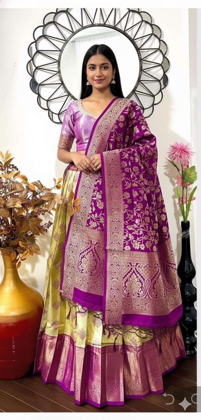 Exclusive soft quality Kanchi pattu / Kanjeevaram silk lehenga with Kanchi boarder rich Kanchi border paired with Banarasi dupatta and blouse and high quality soft lining for baby skin