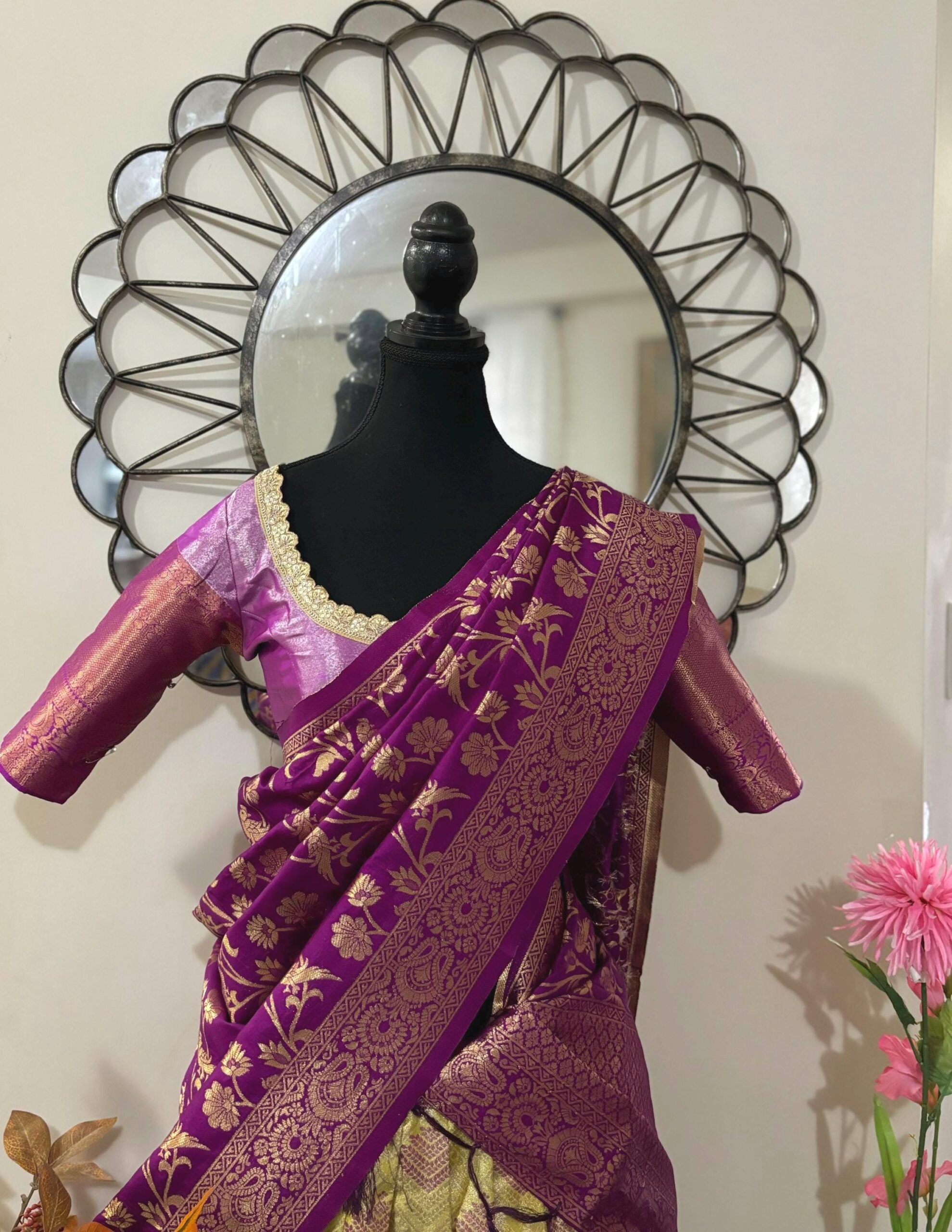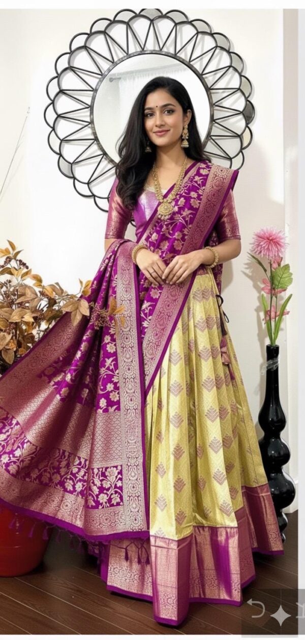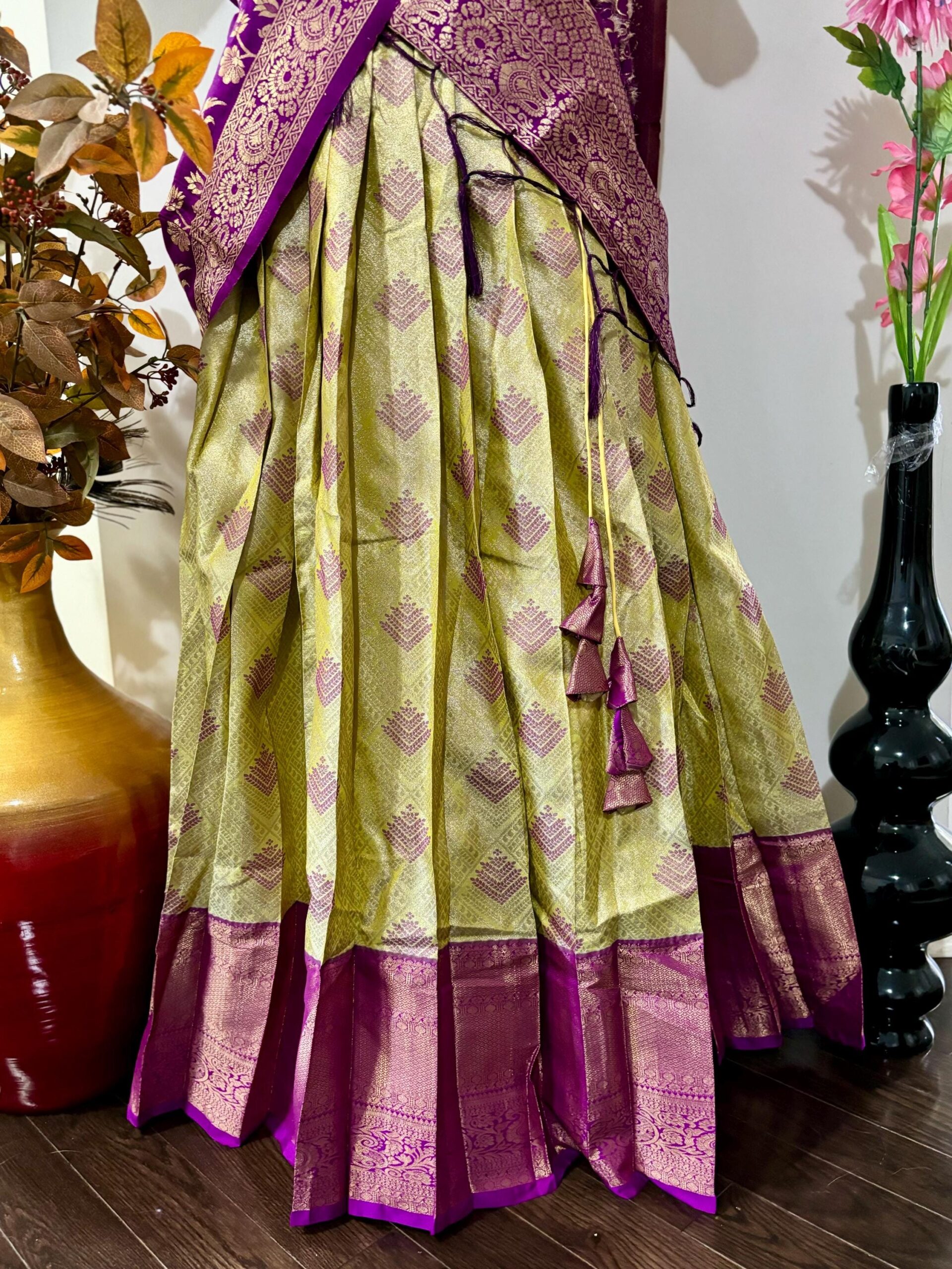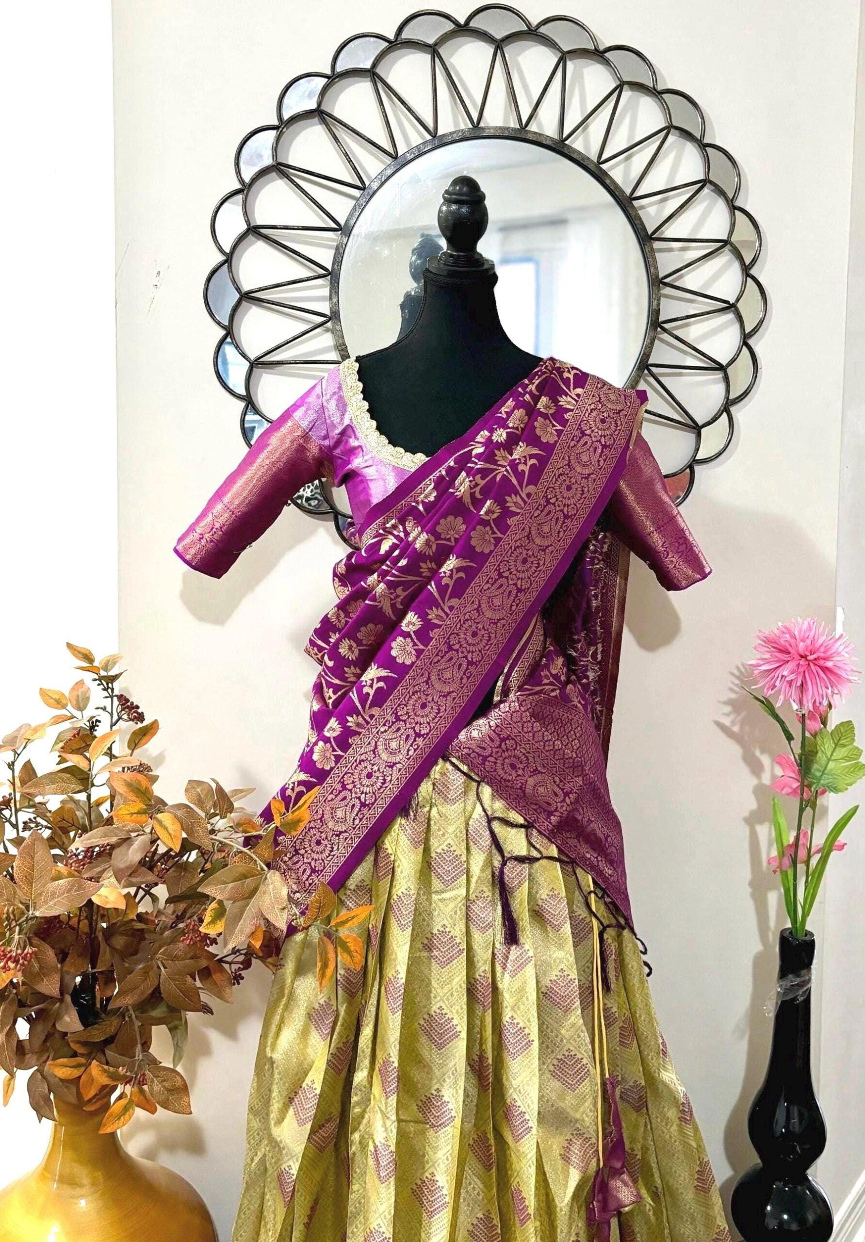 Exclusive soft quality Kanchi pattu / Kanjeevaram silk lehenga with Kanchi boarder rich Kanchi border paired with Banarasi dupatta and blouse and high quality soft lining for baby skin