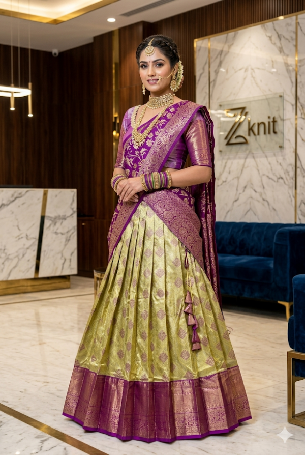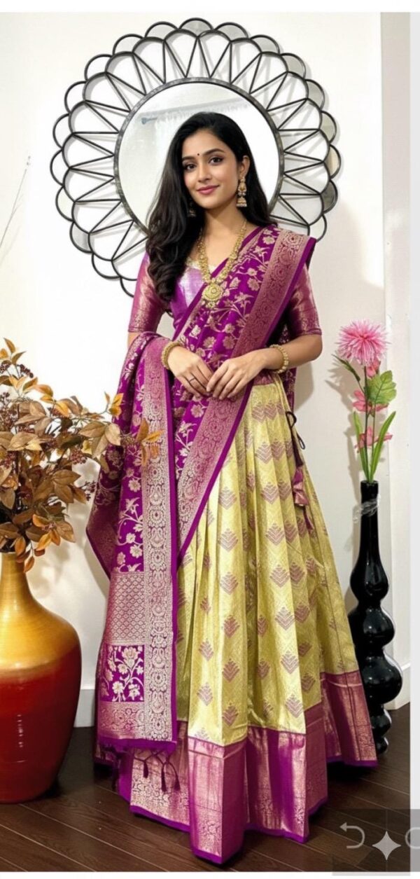 Yellow Pink Silk Lehenga Kanchi pattu Kanjeevaram Silk Lehenga