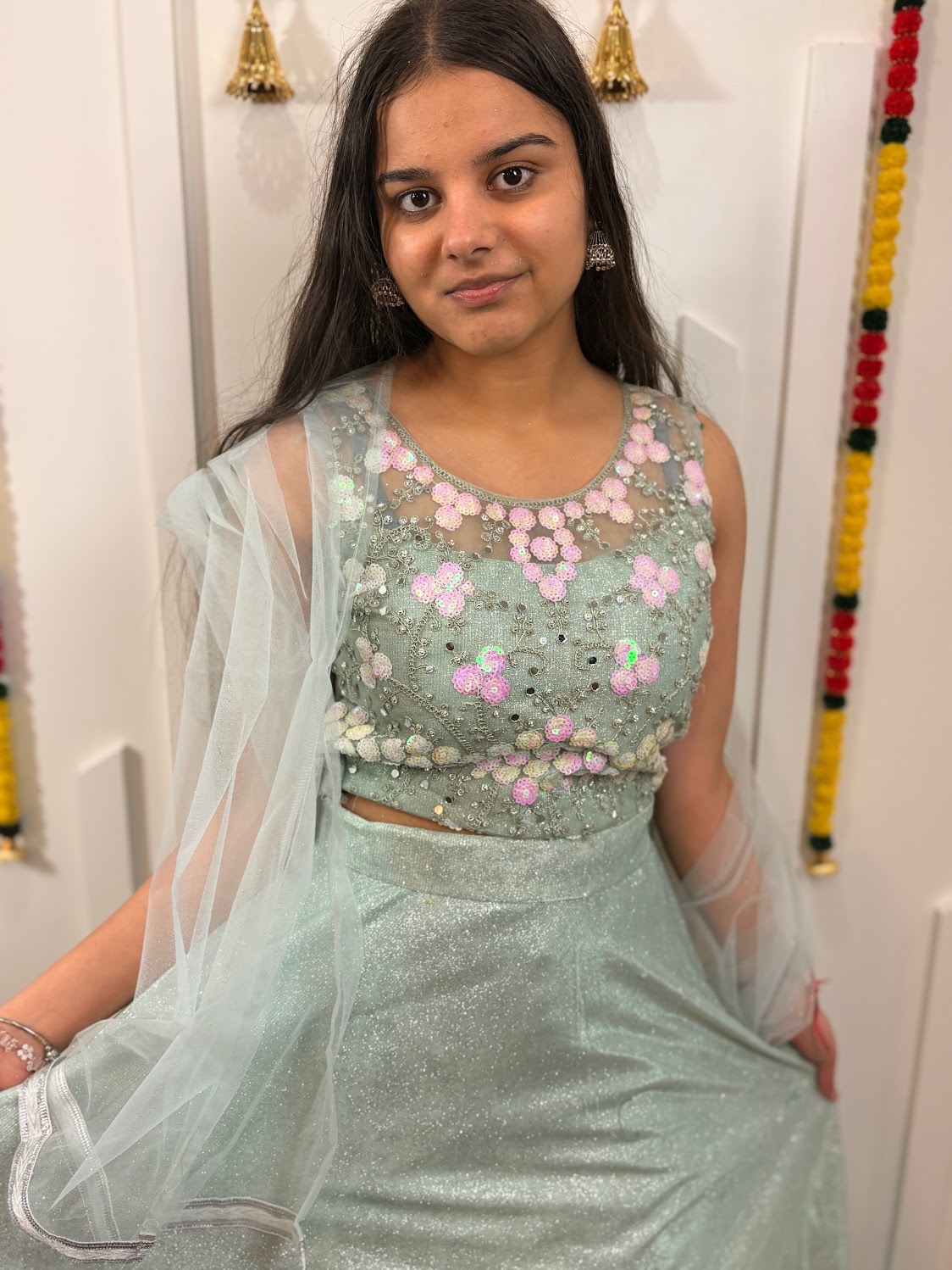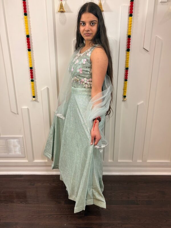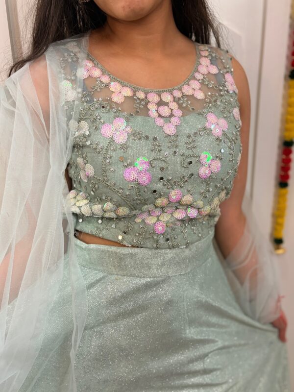 ## **Mint Frost Floral Sequin Lehenga Set** 🌿