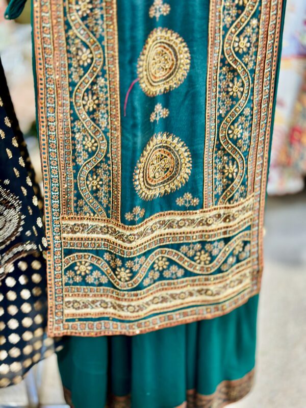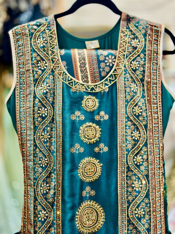 Embrace effortless style with this embroidered ankle-length Indo-Western dress, designed to offer both elegance and comfort. Featuring beautiful embroidery work on the yoke or hemline, the dress blends traditional charm with modern appeal. The highlight is the adjustable drawstring ties, allowing you to tighten or loosen the fit at the waist or sides, ensuring a flattering silhouette tailored to your comfort. Perfect for festive gatherings, casual celebrations, or semi-formal events, this dress is a versatile addition to your wardrobe.