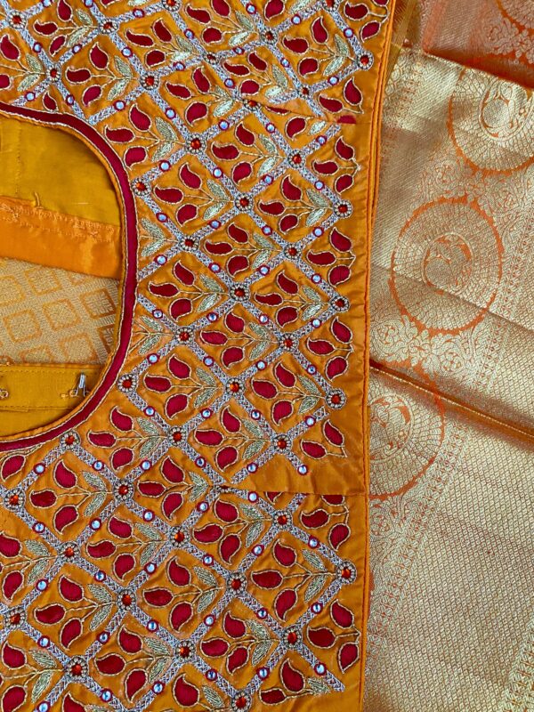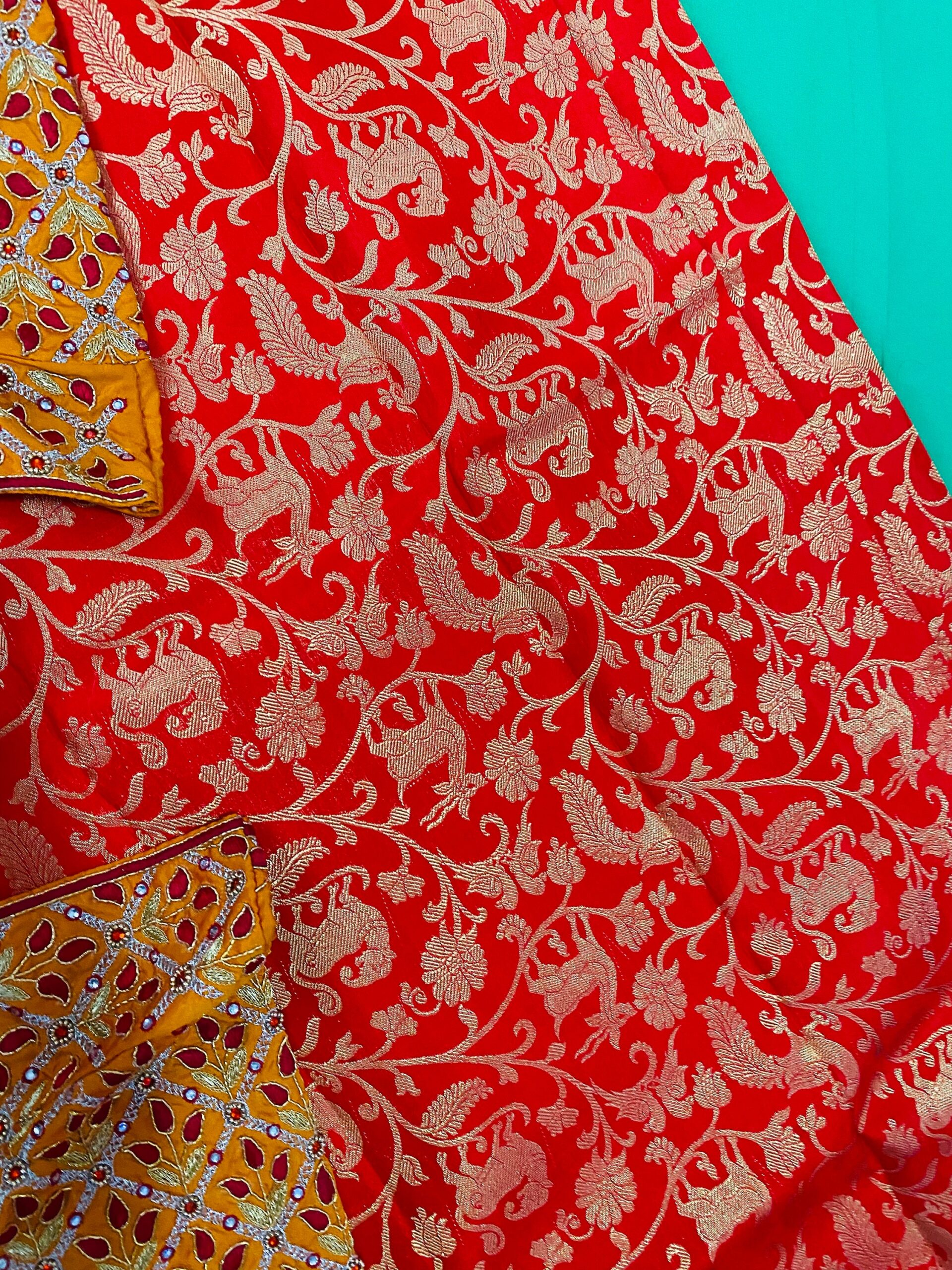 BLOUSE WORK IS DONE WITH HAND MADE KUNDAN WORK ! awesome workmanship with mix of Jardosi and Kardana