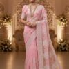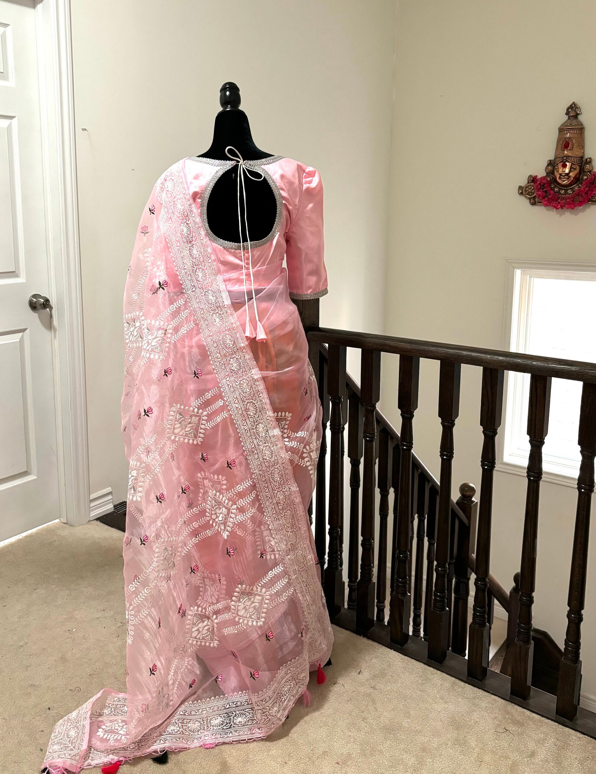 🩸 Banarasi organza saree .. Banarasi organza saree with beautiful chiken Kari design all over the saree. Saree is ready with beautiful designer blouse that fit to 32-46
