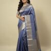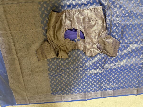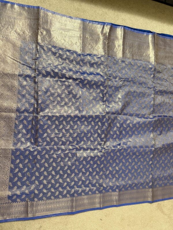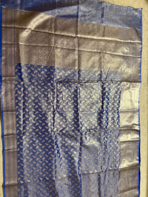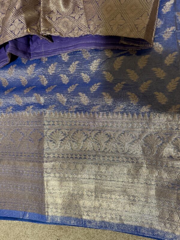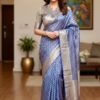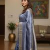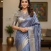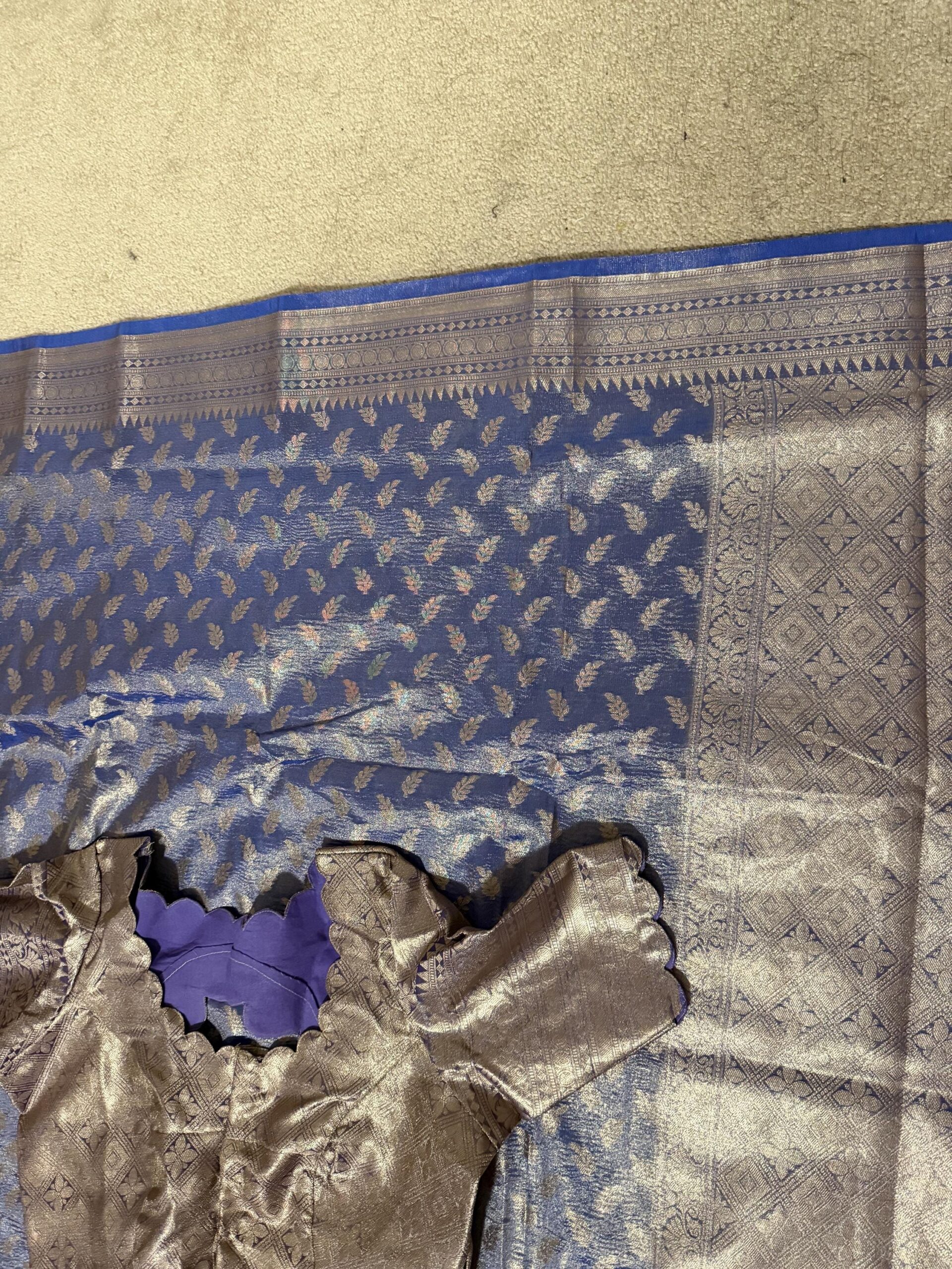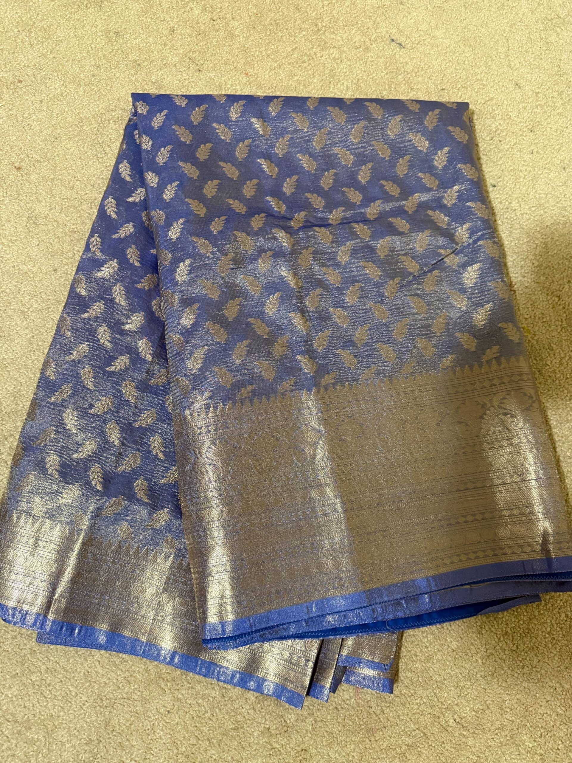 Beautiful grey gold color light weight party wear cocktail pure silk crush tissue Banarasi saree paired up with pretty designer Blouse fits 32-46/contact seller for availabil